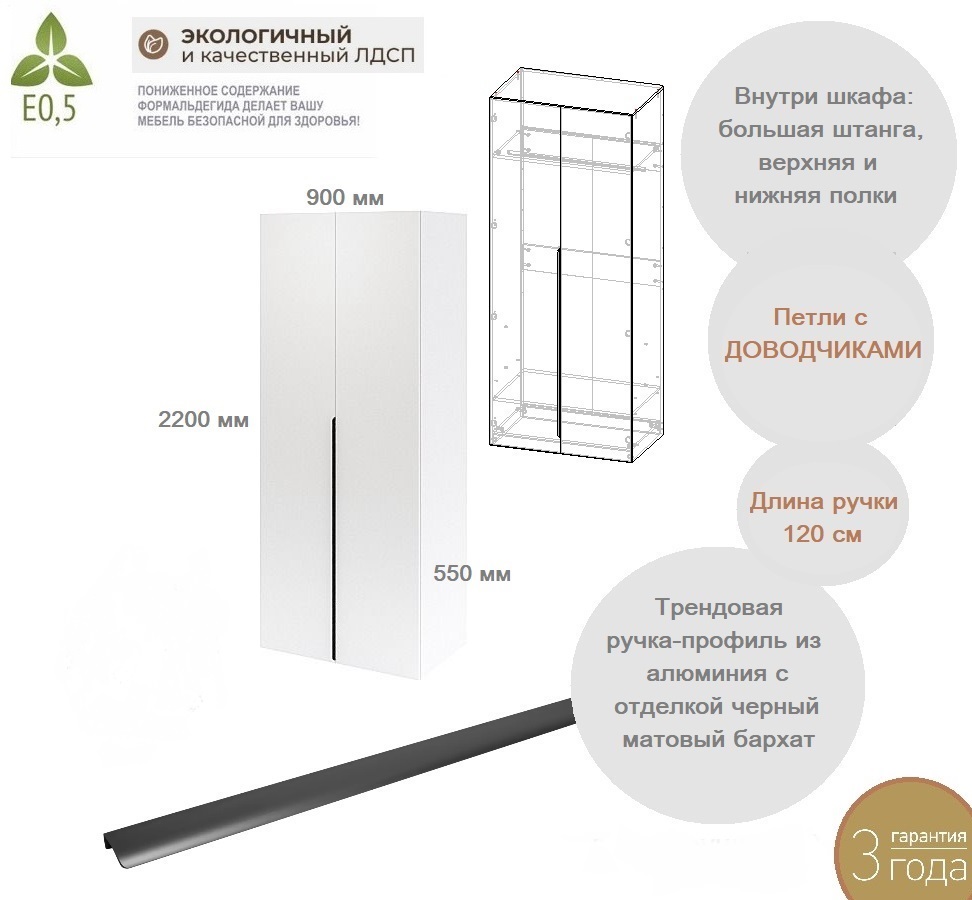 ширина 900 х высота 2200 х глубина 550 мм