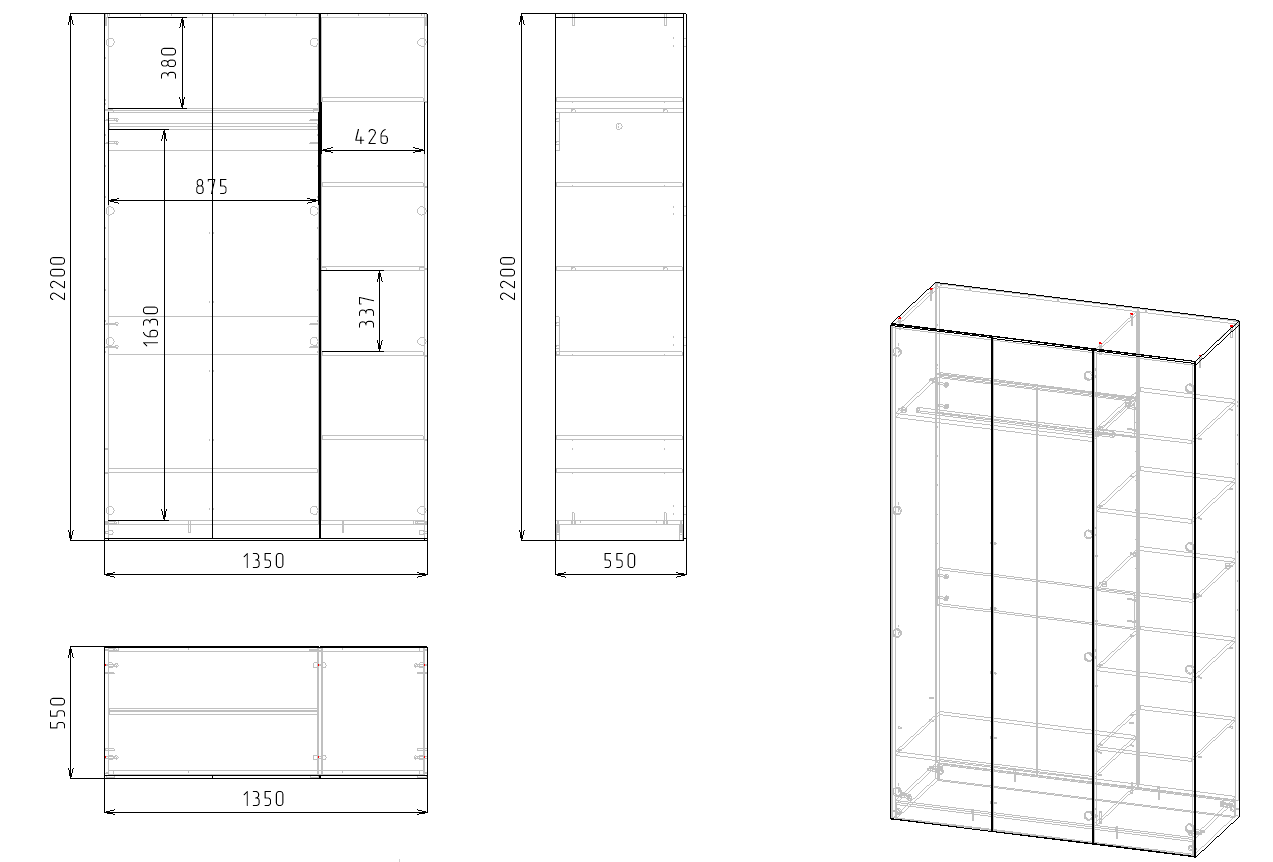 Трехдверный распашной шкаф - функциональное решение для хранения одежды, обуви и аксессуаров.