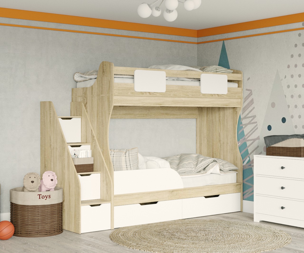 Высокая нагрузка на спальные места. Прочные ящики. Высокий, безопасный бортик