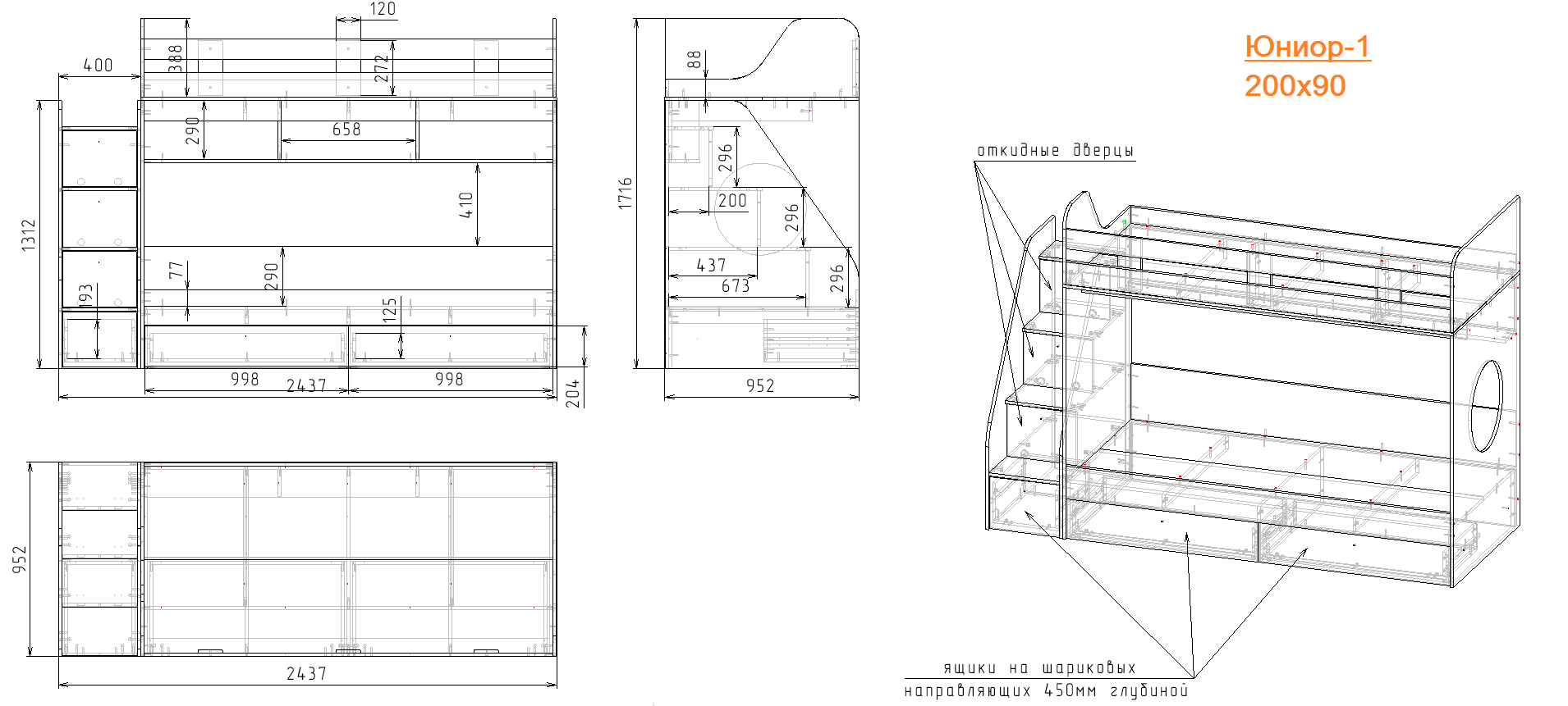 Высокая нагрузка на спальные места. Высокий, безопасный борт. Прочные ящики!