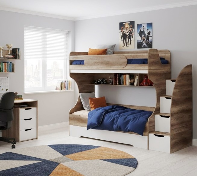 Увеличенное нижнее спальное место позволяет комфортно разместиться ребенку вместе со взрослым.
