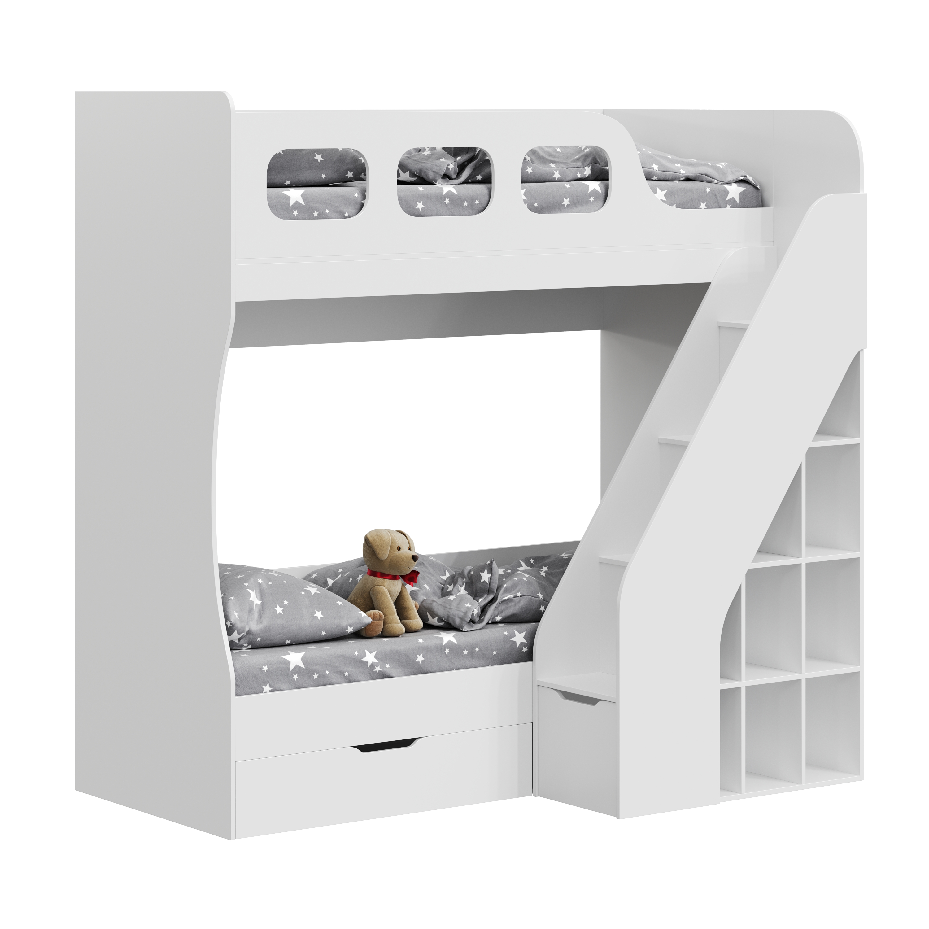 В нижней части лестницы имеется ящик для игрушек (распашной).
