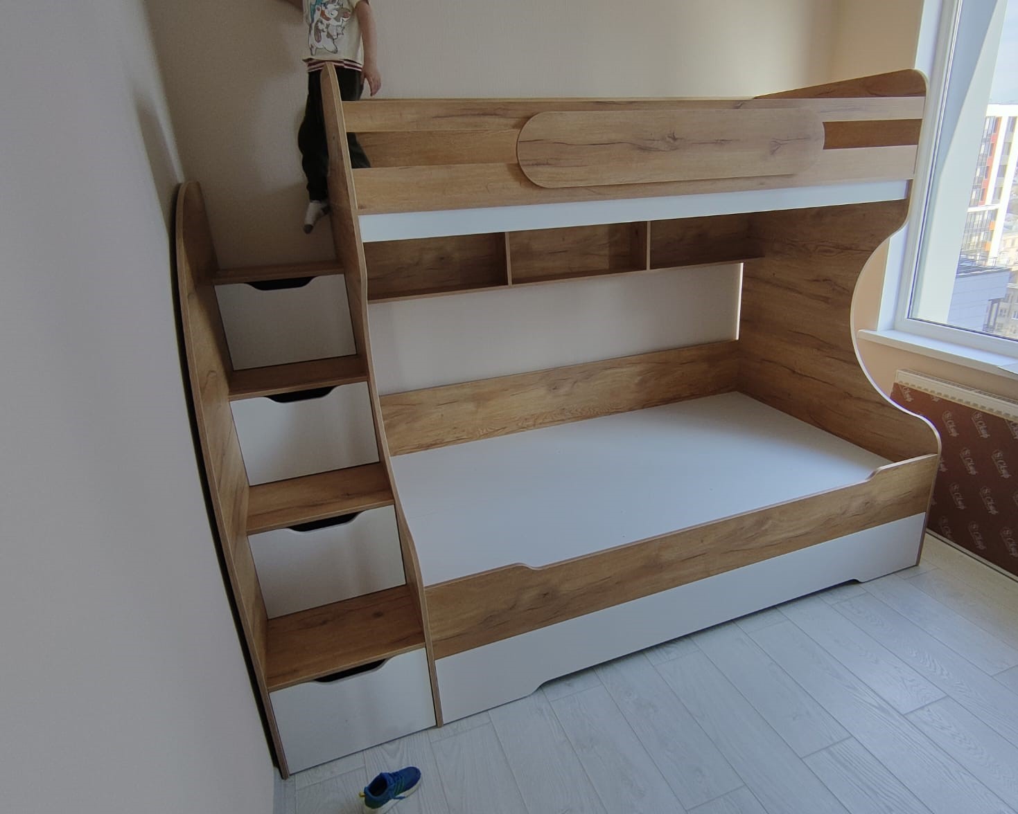 Вместо них - цельный и прочный настил из ЛДСП, который выдерживает сверхвысокую нагрузку и позволяет расположиться даже взрослому с ребенком.