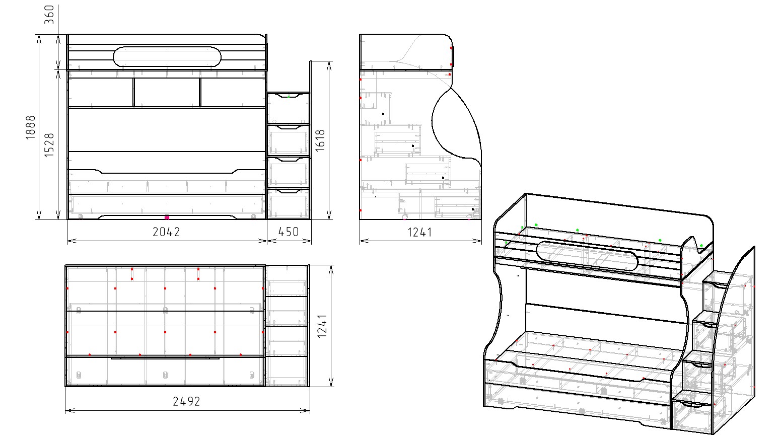 Просторная двухъярусная кровать БИГ с дополнительным третьим спальным местом