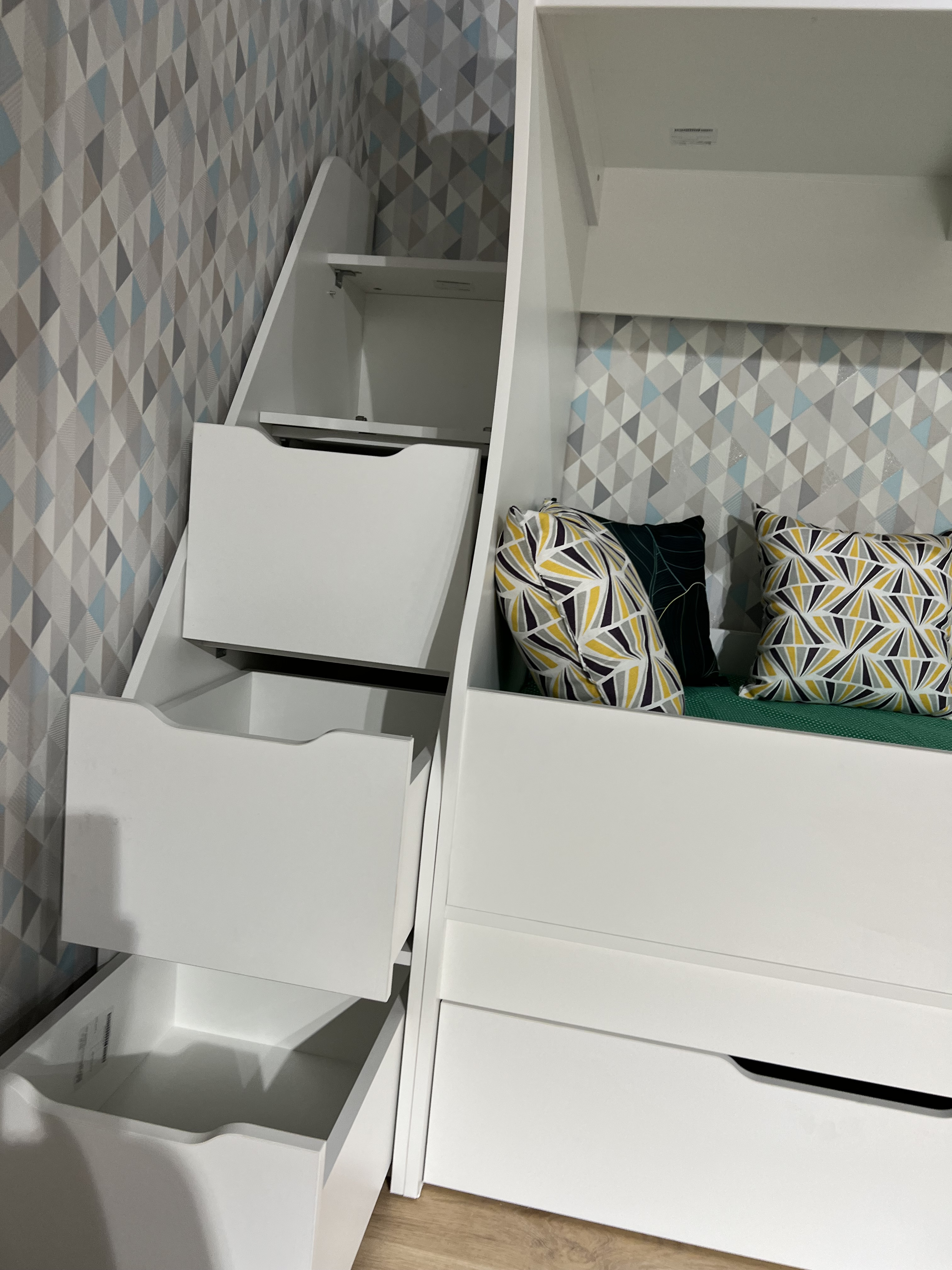 Вместо них - цельный и прочный настил из ЛДСП, который выдерживает сверхвысокую нагрузку и позволяет расположиться даже взрослому с ребенком.