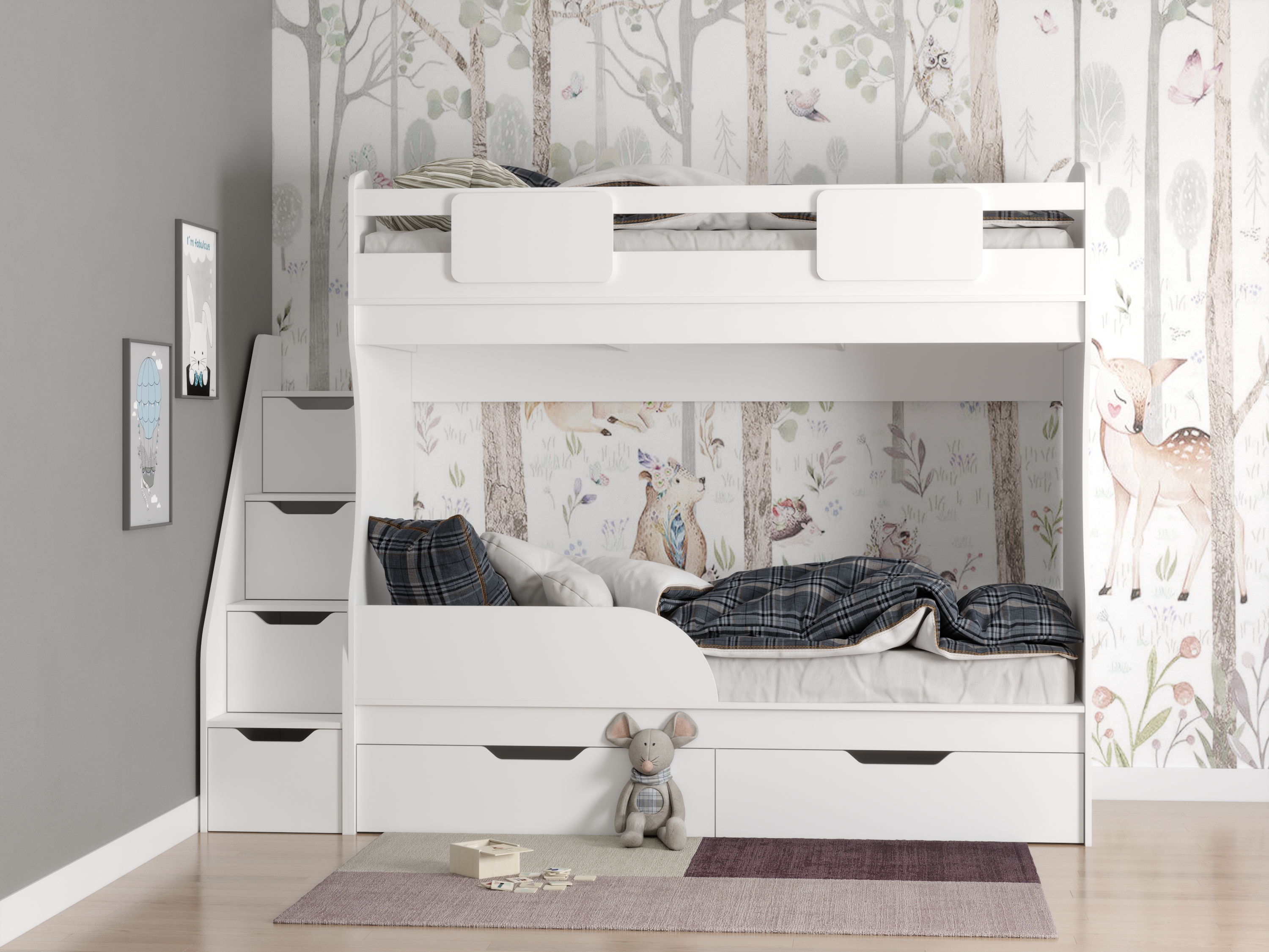 Белый цвет мебели визуально расширяет пространство и отлично подходит разнополым детям.
