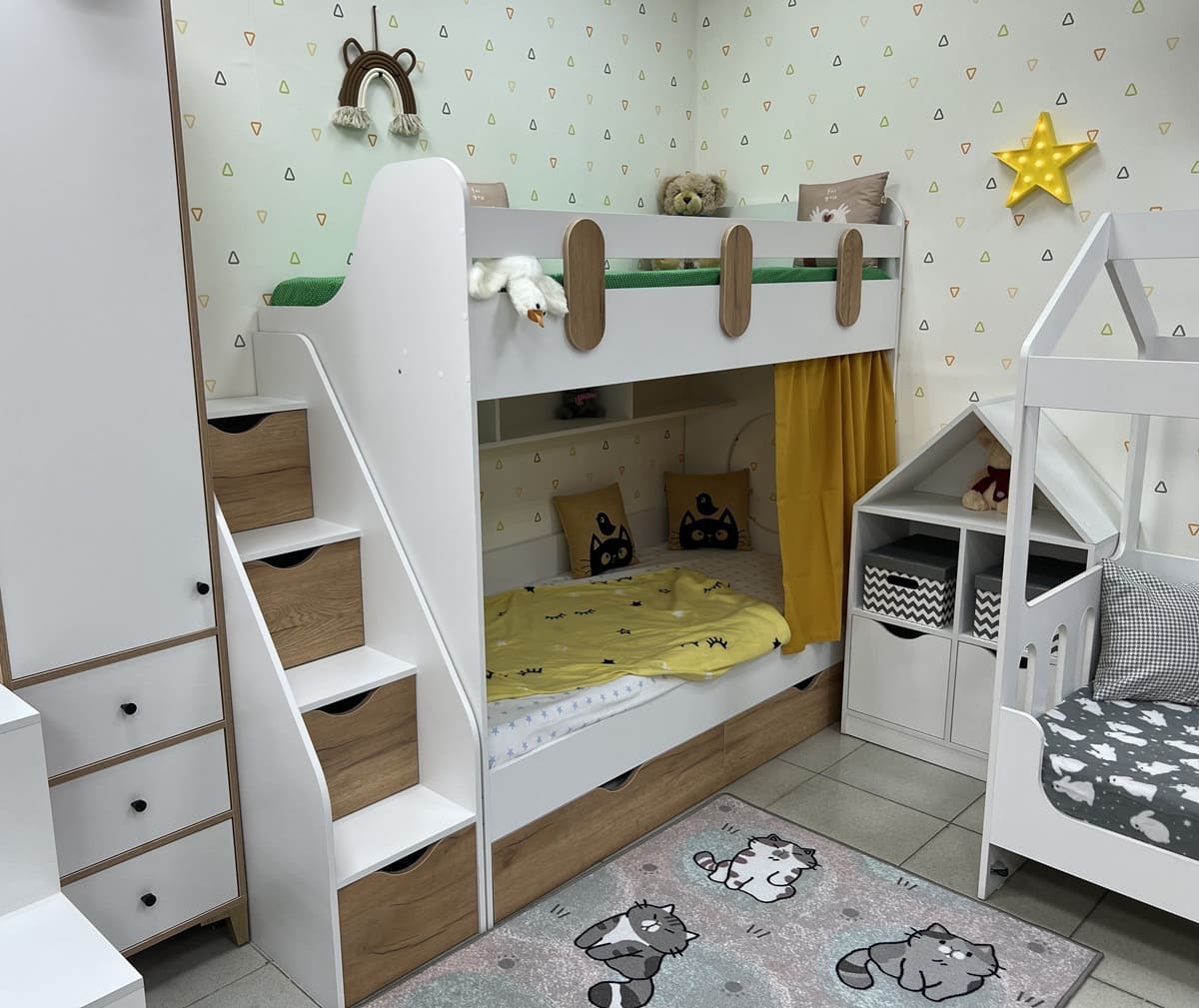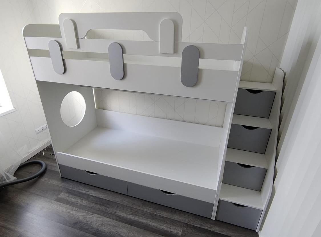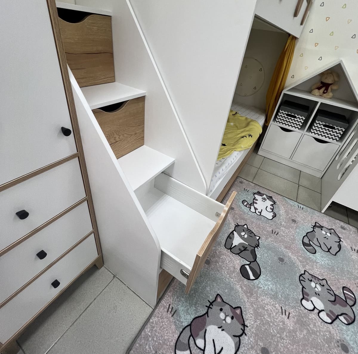 <comment>Вот такую красоту муж сделал с помощью вашей кровати). Дети очень хотели кроватку с окошками))). Спасибо вам огромное. Шкаф тоже очень удобный и стильный. </comment>