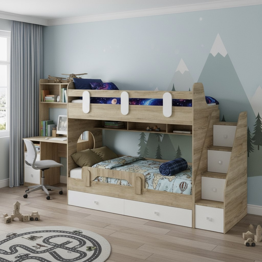 Двухъярусная кровать Фортуна-2 с удобной лестницей, высоким, безопасным бортиком и комфортной высотой.