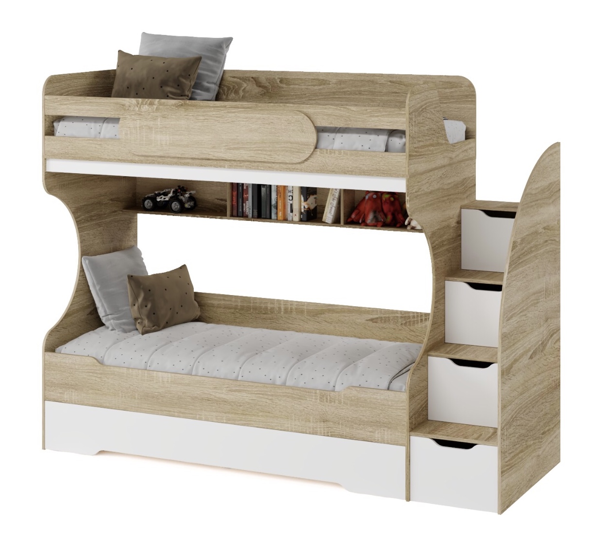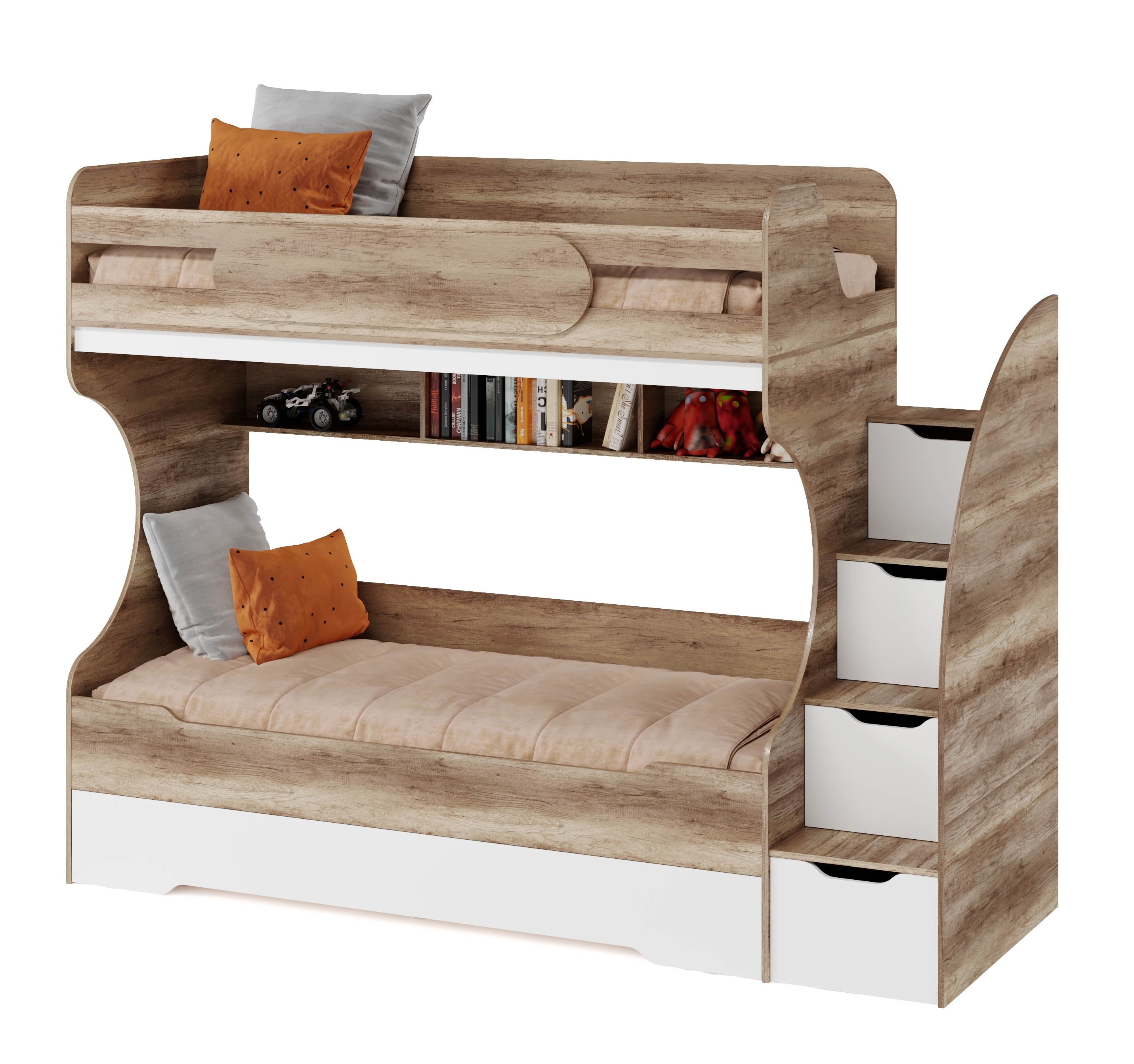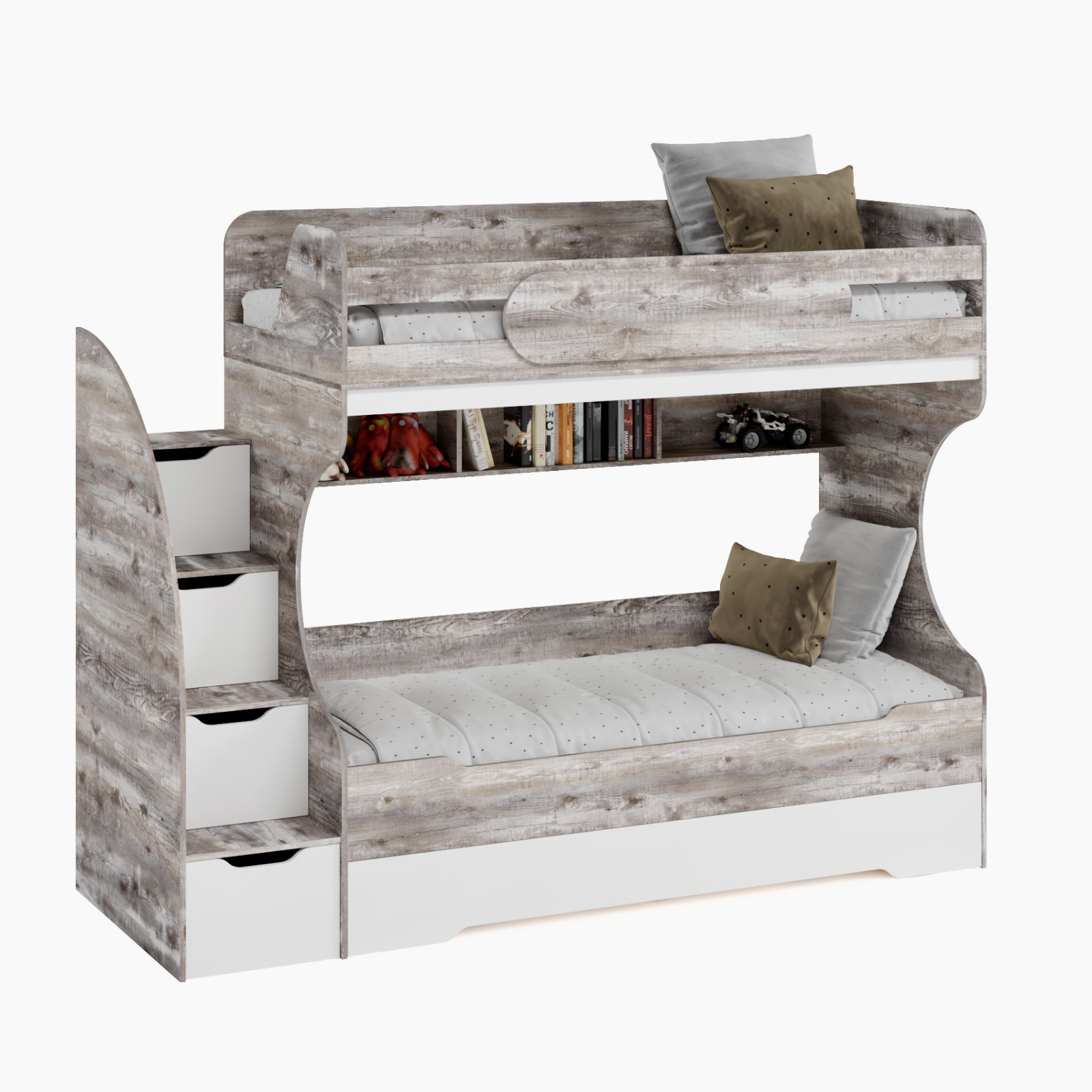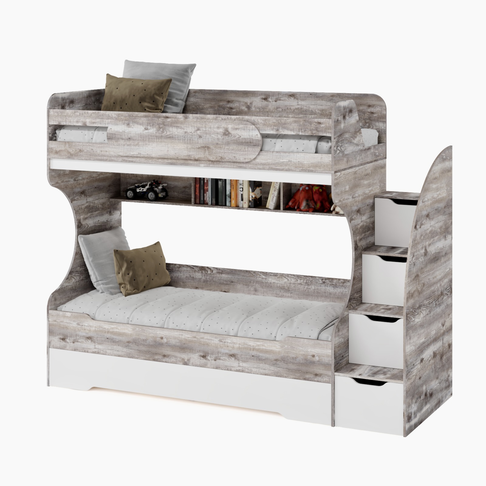 * В лестницу встроены выдвижные ящики для игрушек.