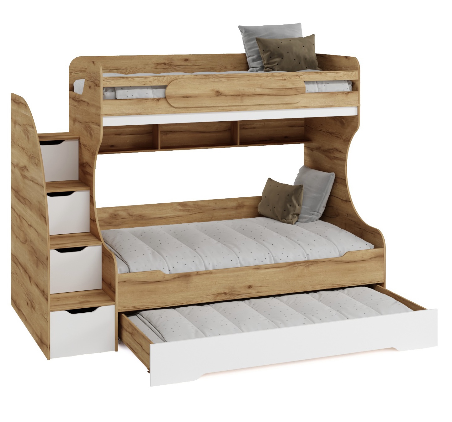 Нижний выдвижной ящик можно использовать для хранения белья или как дополнительное третье спальное место (ящик на выкатных роликах).