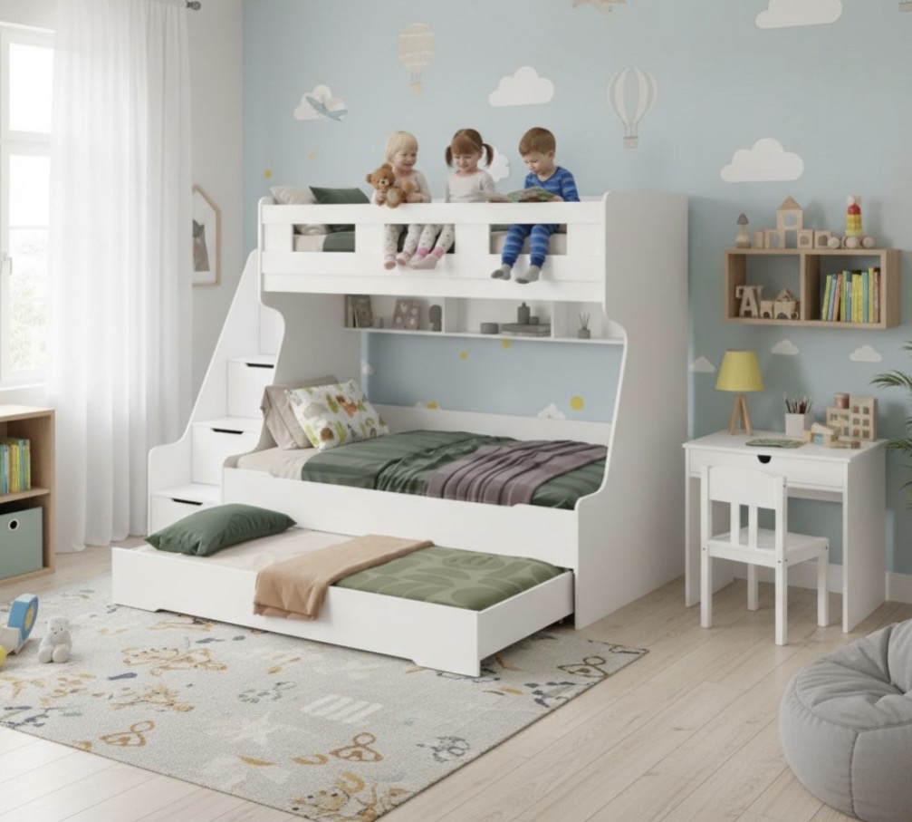 Кровать РУМ с дополнительным выдвижным третьим спальным местом - идеальное решение для детской комнаты!