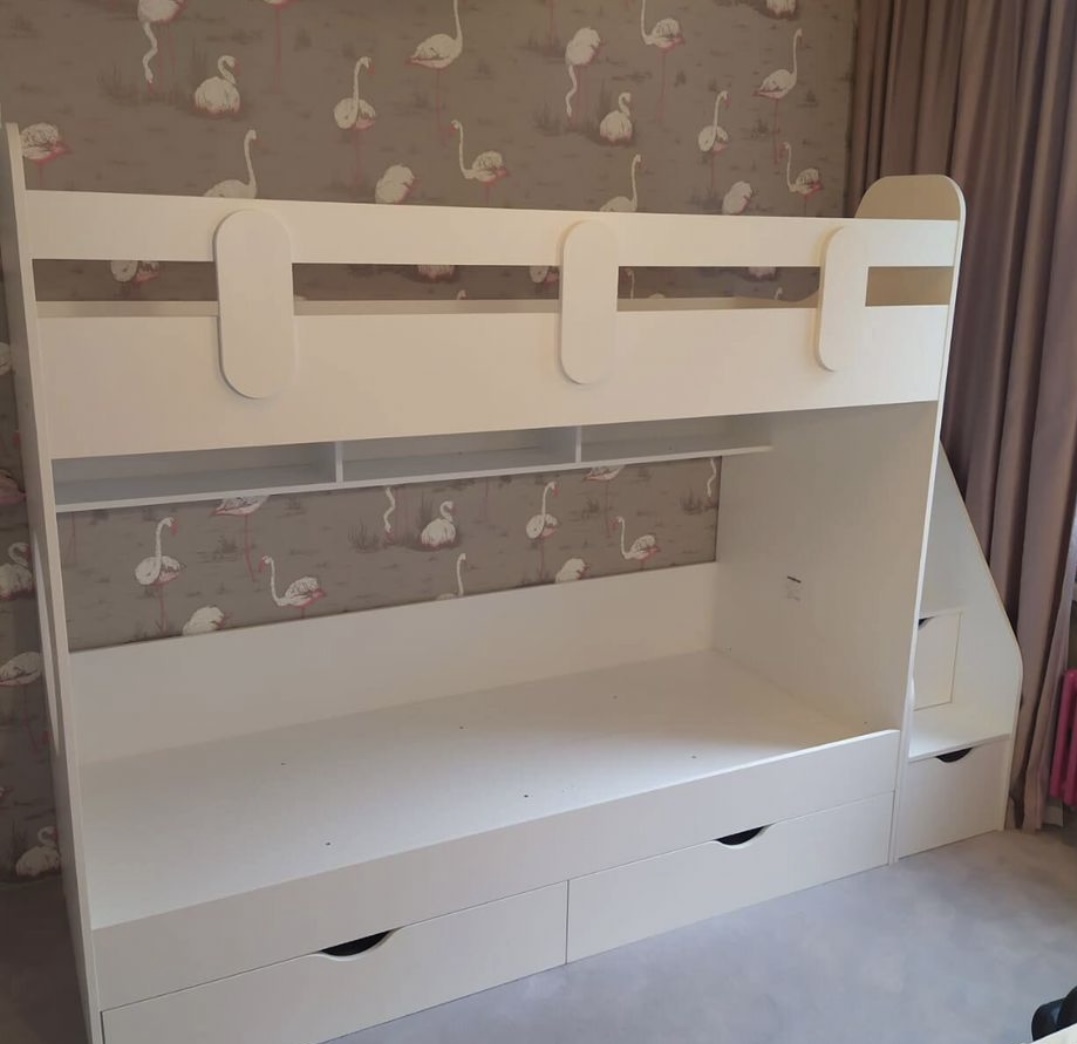 Основание кровати – прочный настил ЛДСП (НЕ РЕЙКИ!), который позволяет ребенку спать на ровной поверхности, что важно для детской спины.