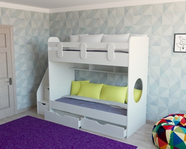 Габариты кровати с учетом лестницы: ширина 2436 х высота 1736 х глубина 955 мм
