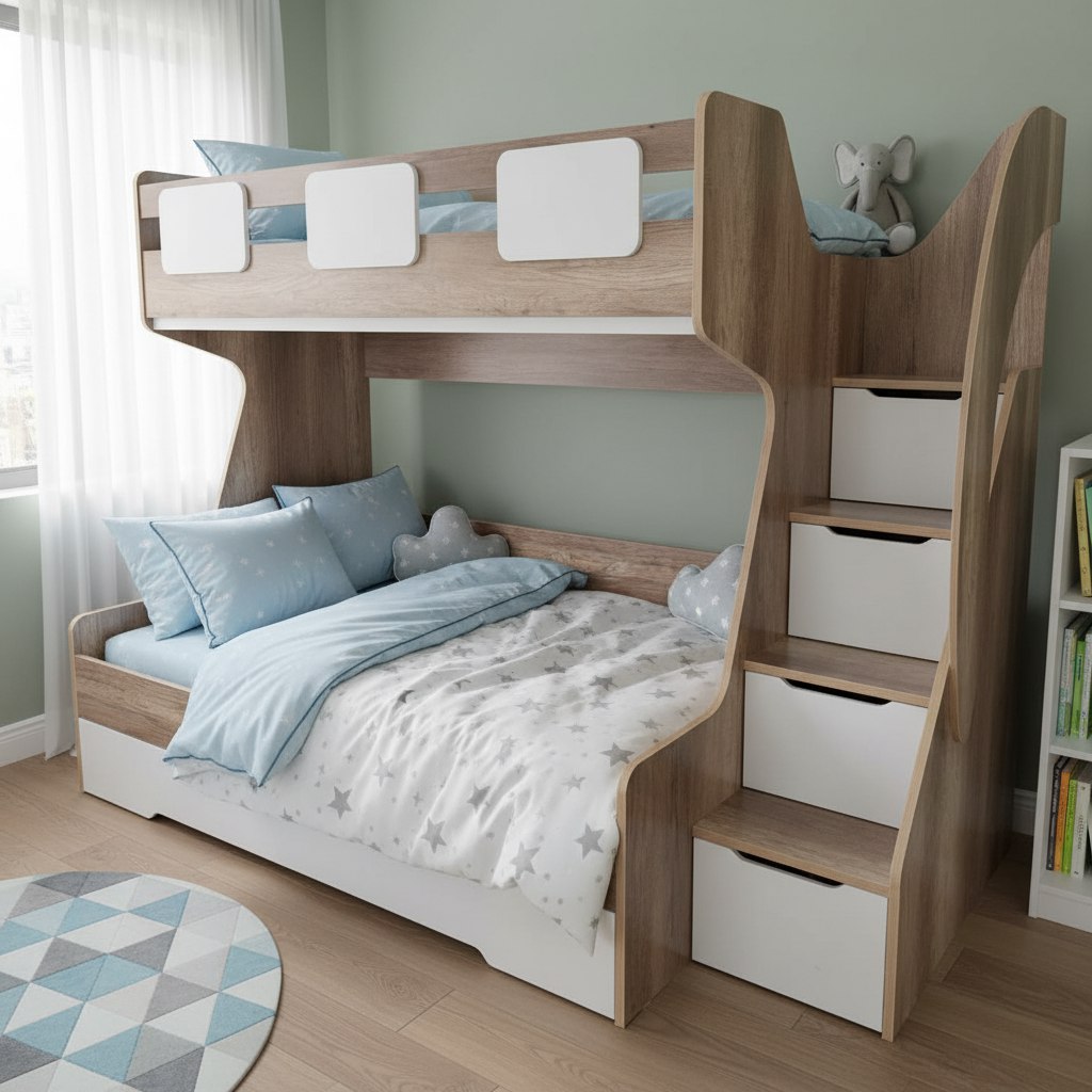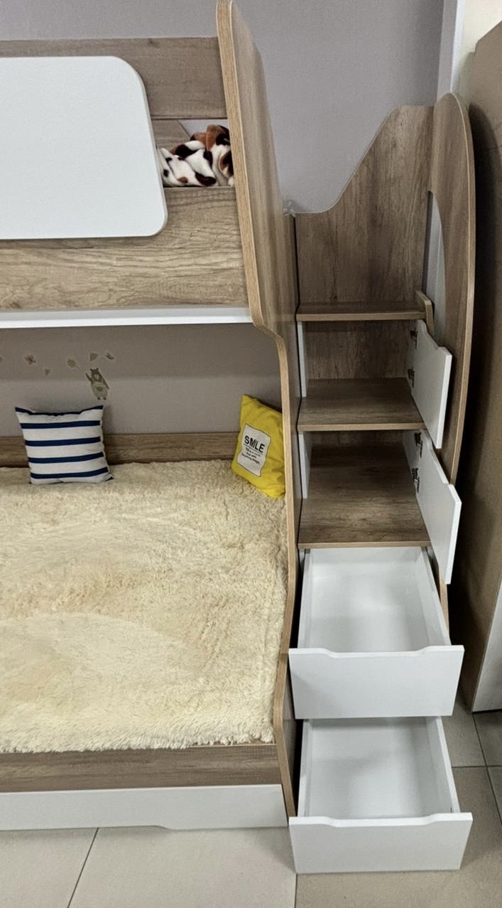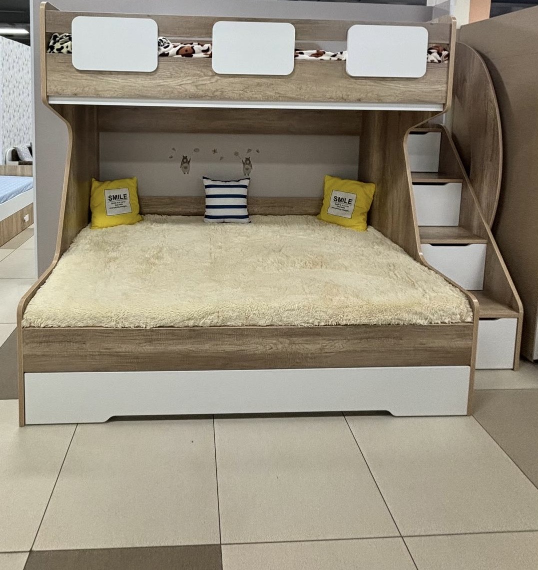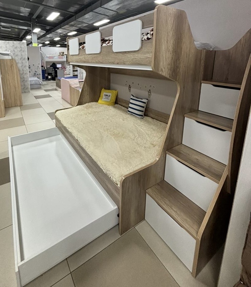 Увеличенное, просторное нижнее спальное место позволяет комфортно разместиться ребенку вместе со взрослым.