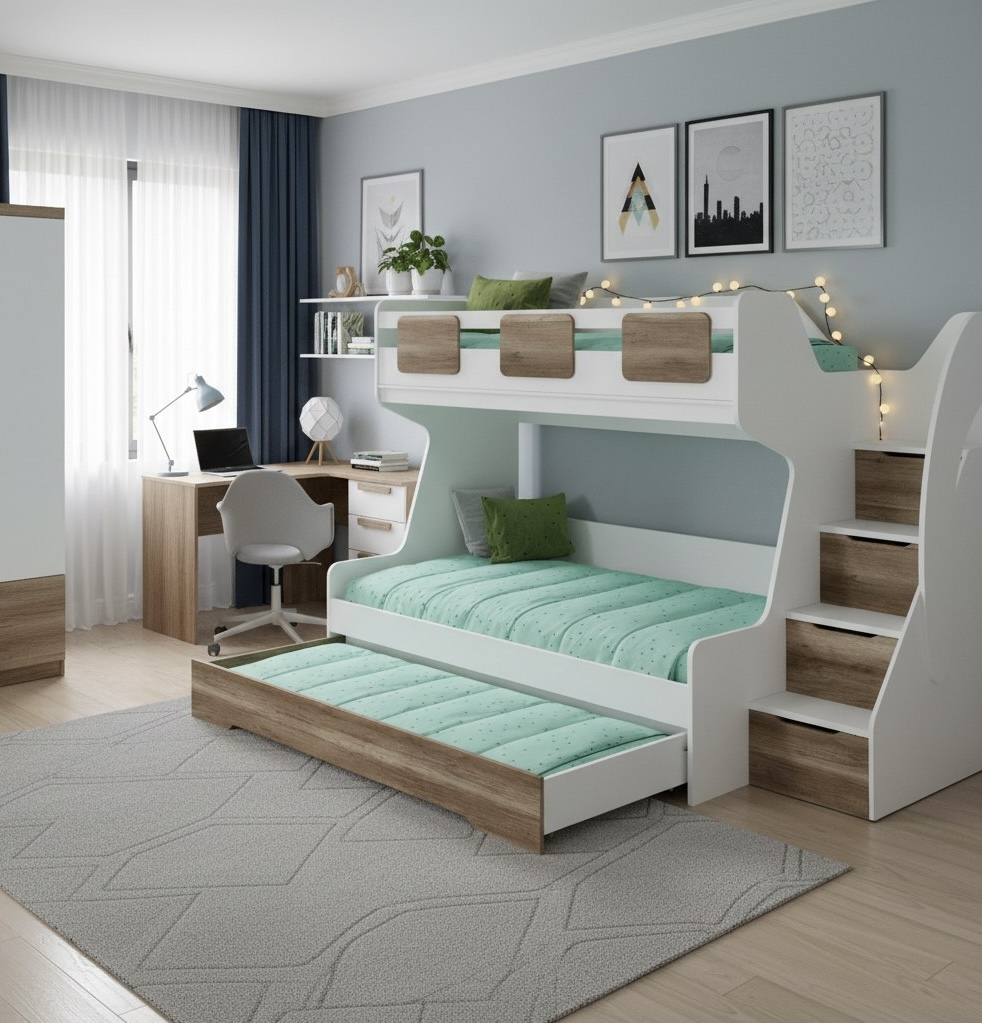 * Нижний выдвижной ящик можно использовать как дополнительное спальное место.