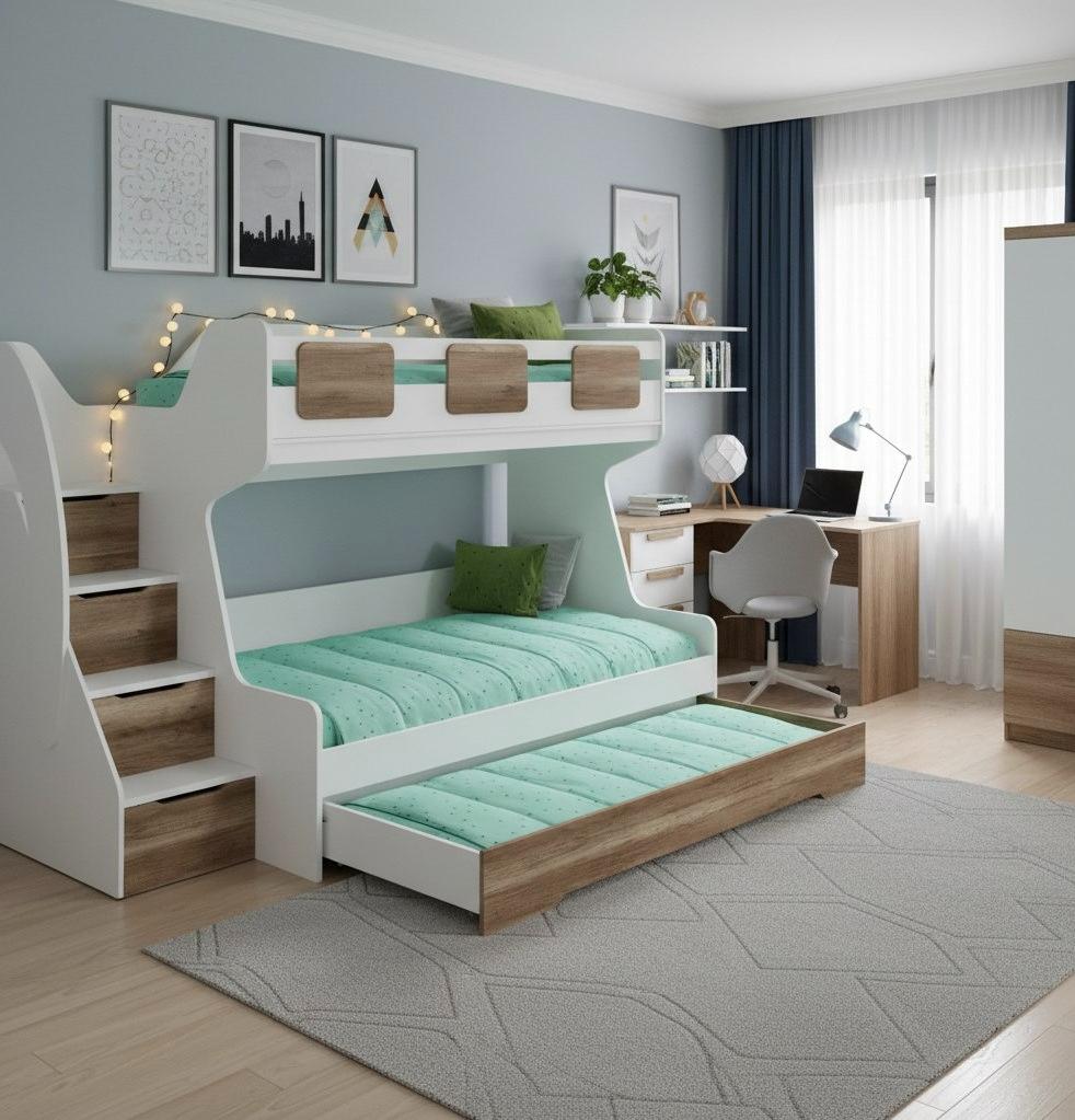* Дополнительно к нижней кровати можно приобрести съемный бортик-ограничитель.
