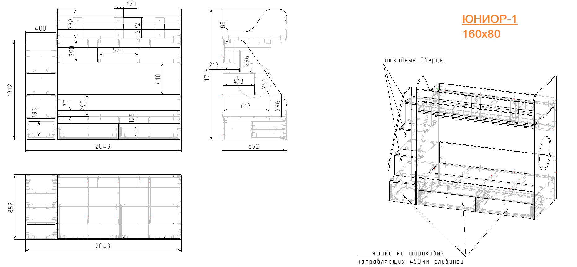 Высокая нагрузка на спальные места. Прочные ящики! Высокий, безопасный борт |