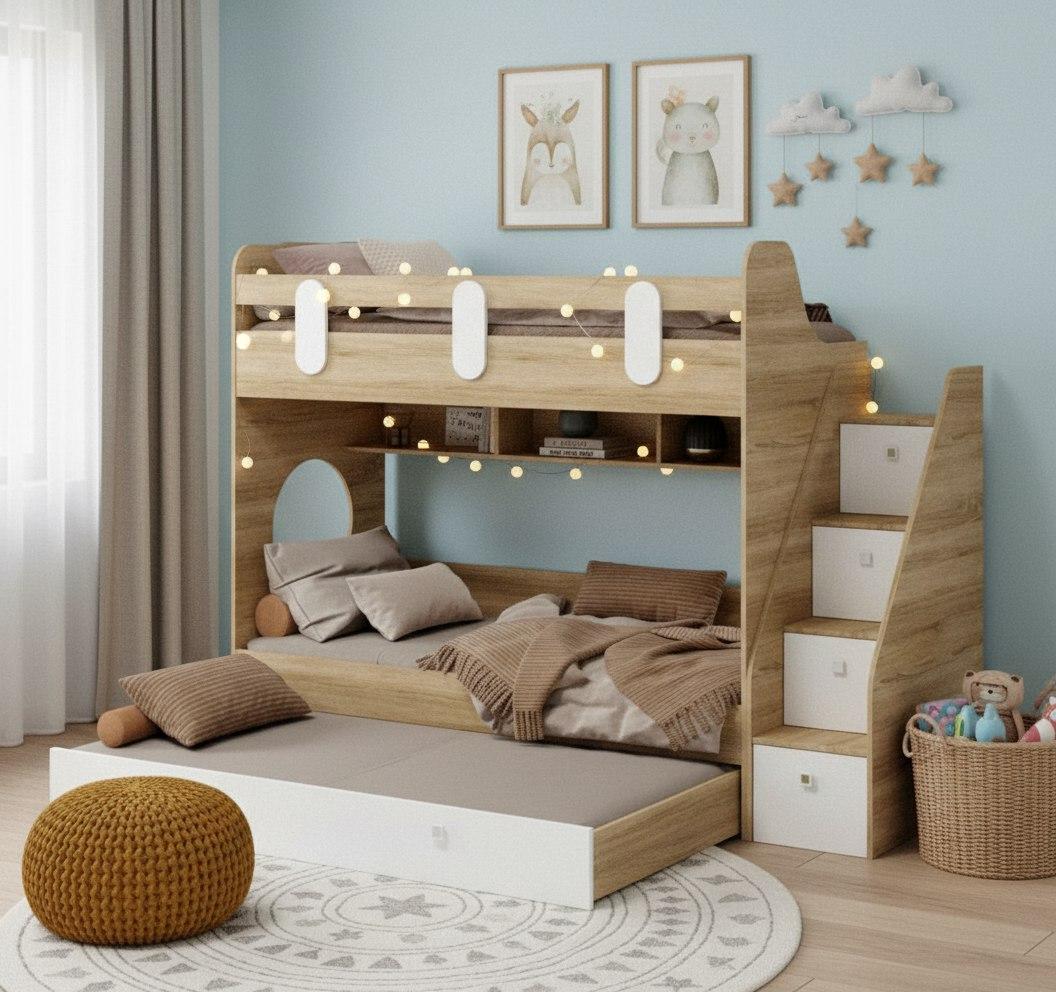 Высокая нагрузка на спальные места. Безопасный, высокий бортик. Прочные ящики!