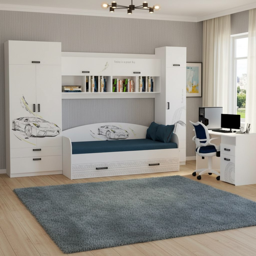 кровать + стол + шкаф + пенал + полка навесная (2 шт)
