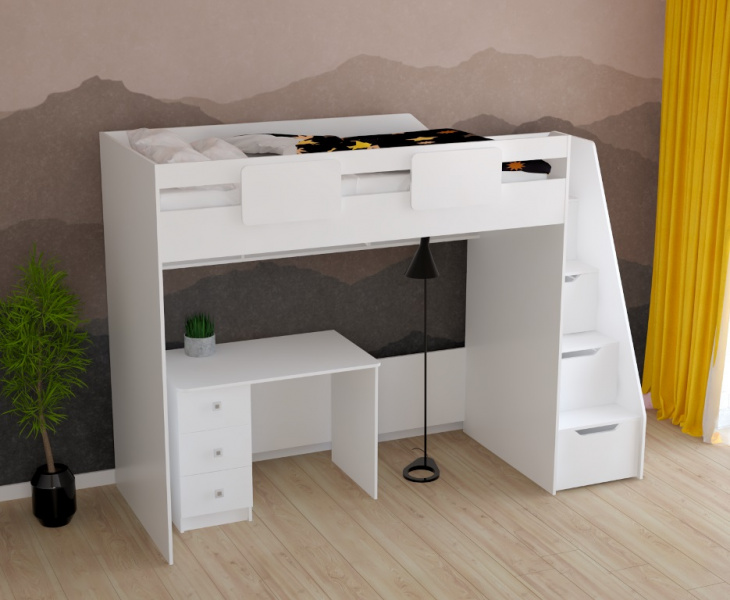 кровать-чердак Мозаика-2 + стол коллекции Умка
