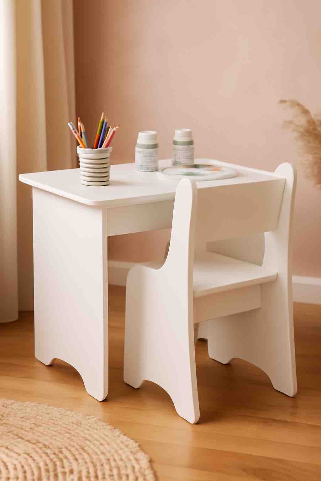 Все торцы стола и стульчика закруглены и обработаны ударопрочной кромкой ПВХ (не кант!)