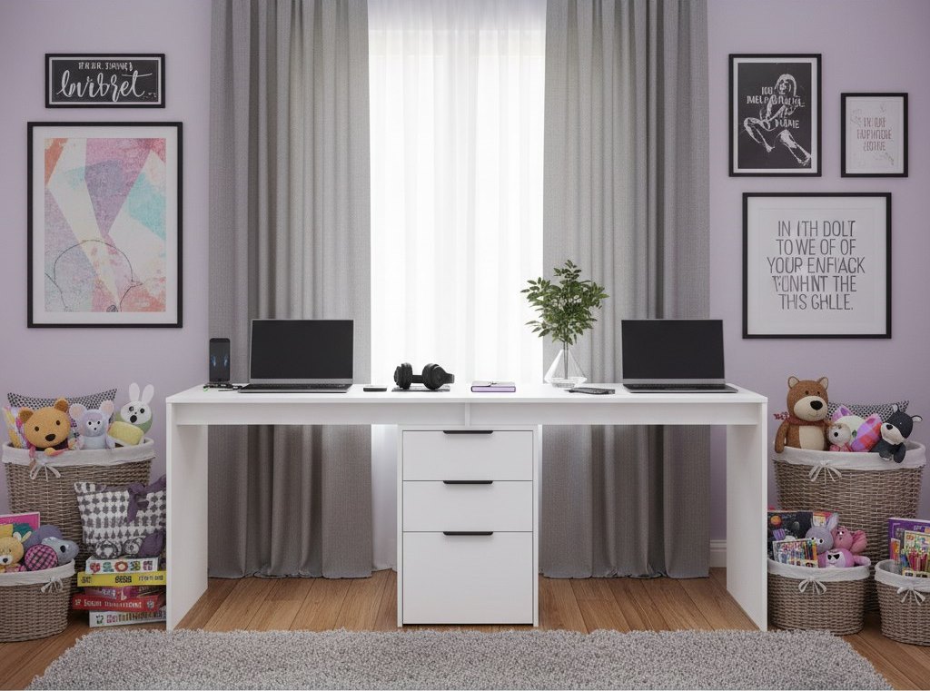 Стол письменный Тандем украсит современную детскую комнату и поможет организовать комфортный учебный процесс для двоих детей.