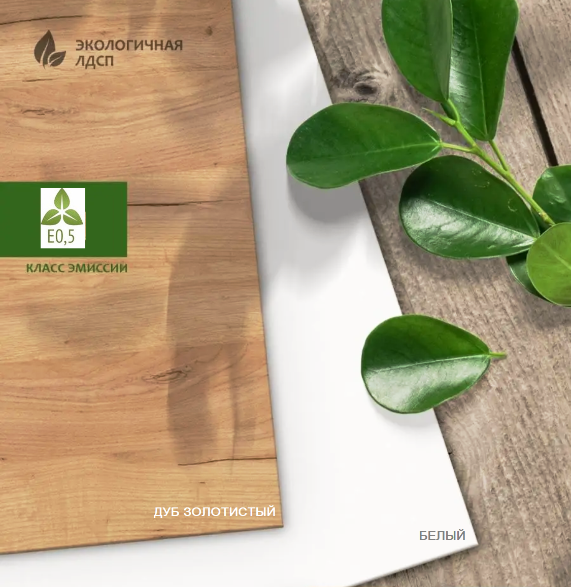 ЛДСП Е0,5. Толщина 16 мм. Цвета в продаже: полностью белый, дуб сонома + белый, дуб каньон + белый, дуб золотистый + белый, графит + белый |