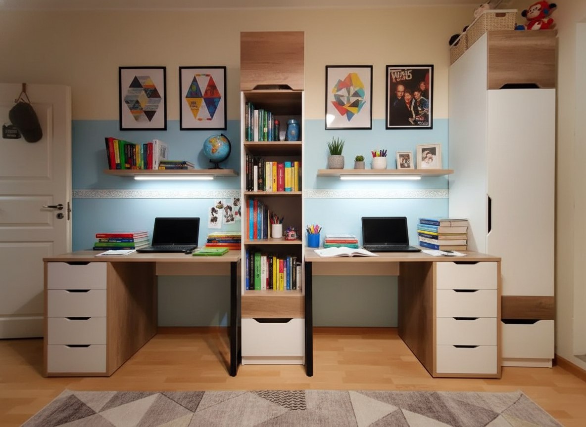 Выдвижные ящики тумб на направляющих скрытого монтажа с доводчиками.