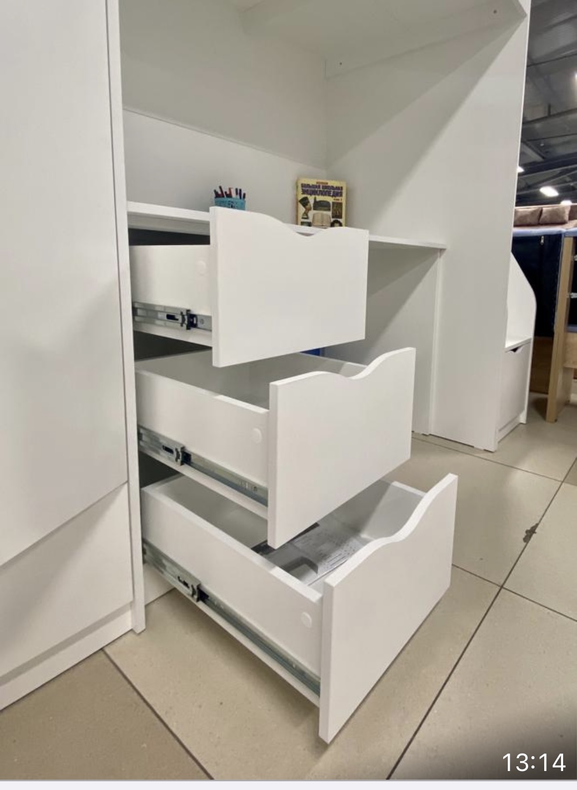Мебель выполнена из сертифицированного, качественного, экологически чистого ЛДСП в белом цвете.