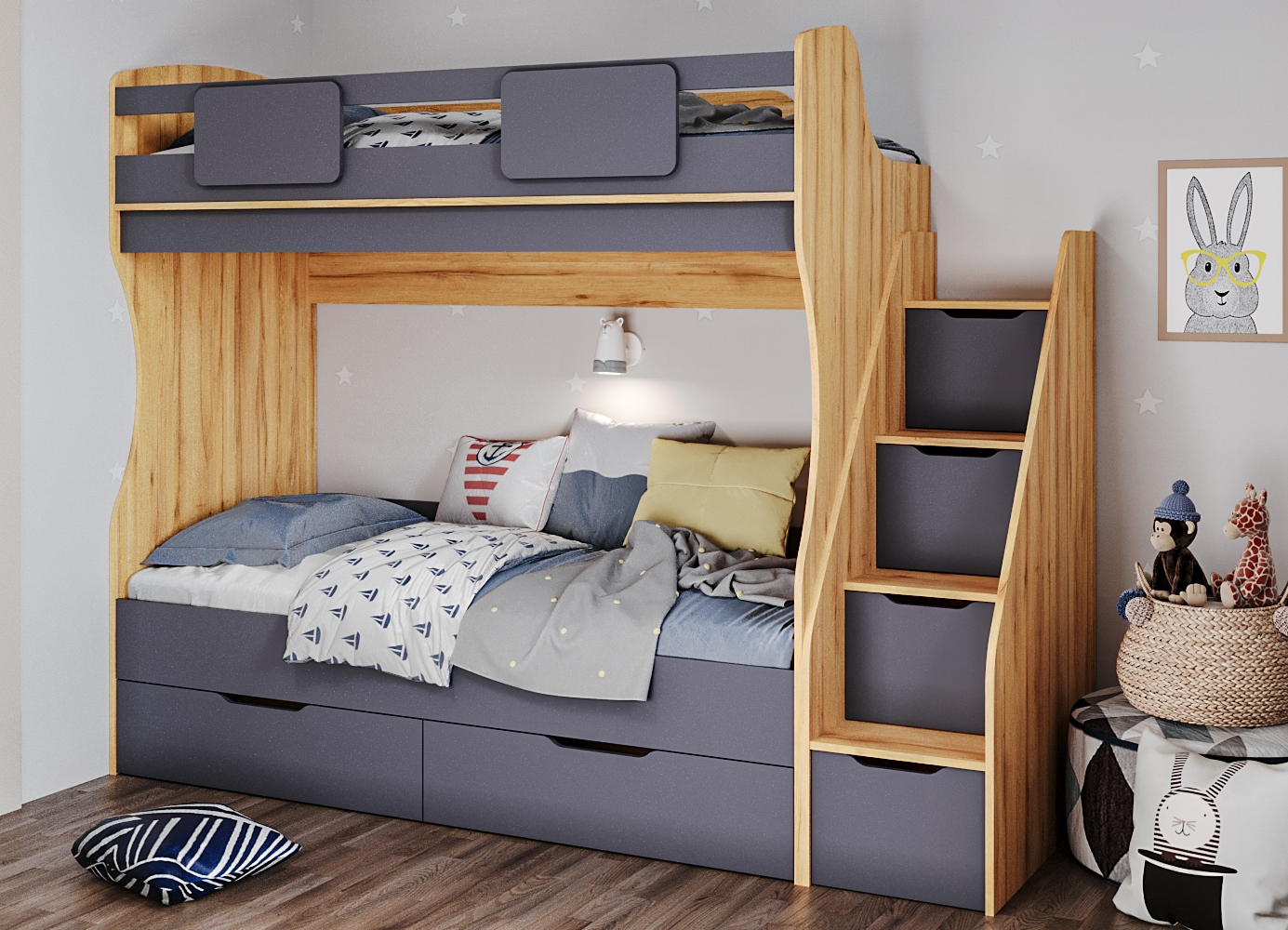 Двухъярусная кровать Миа - современное и стильное решение для оформления комнаты для двоих детей.