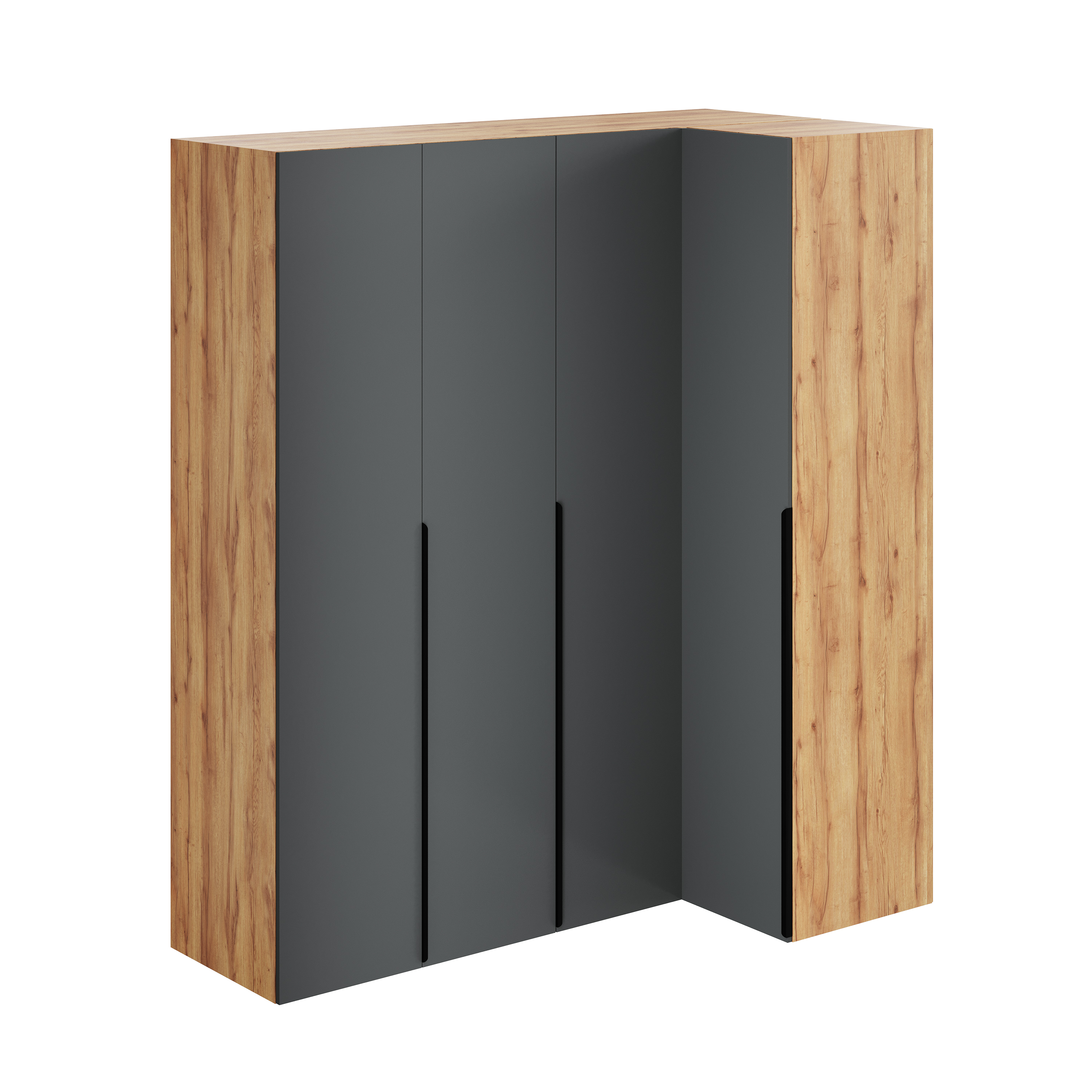Распашной двухстворчатый шкаф + угловой шкаф + пенал коллекции Брайт Графит