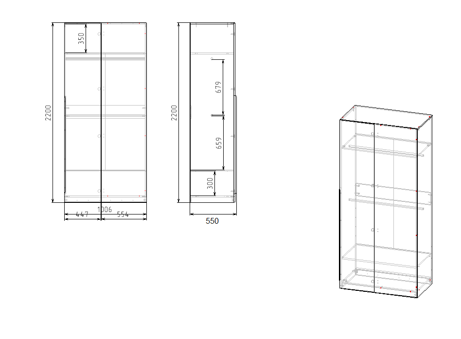 ширина 1006 х высота 2200 х глубина 550 мм