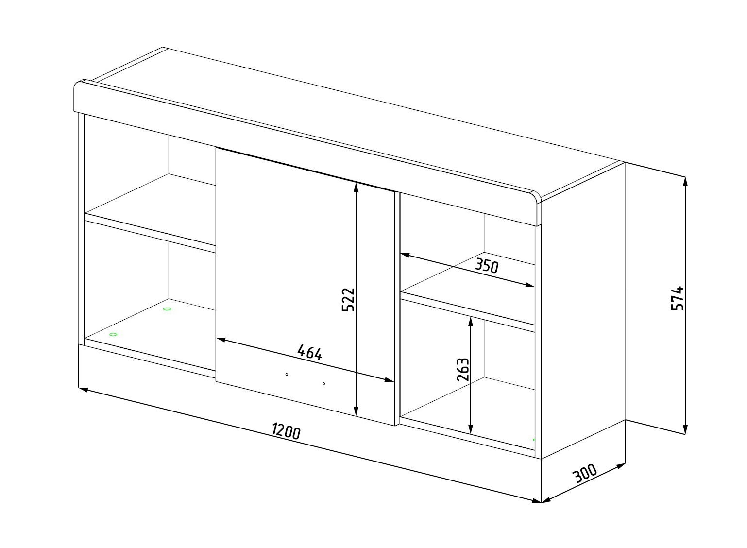 Габариты: ширина 1210 х глубина 316 х высота 563