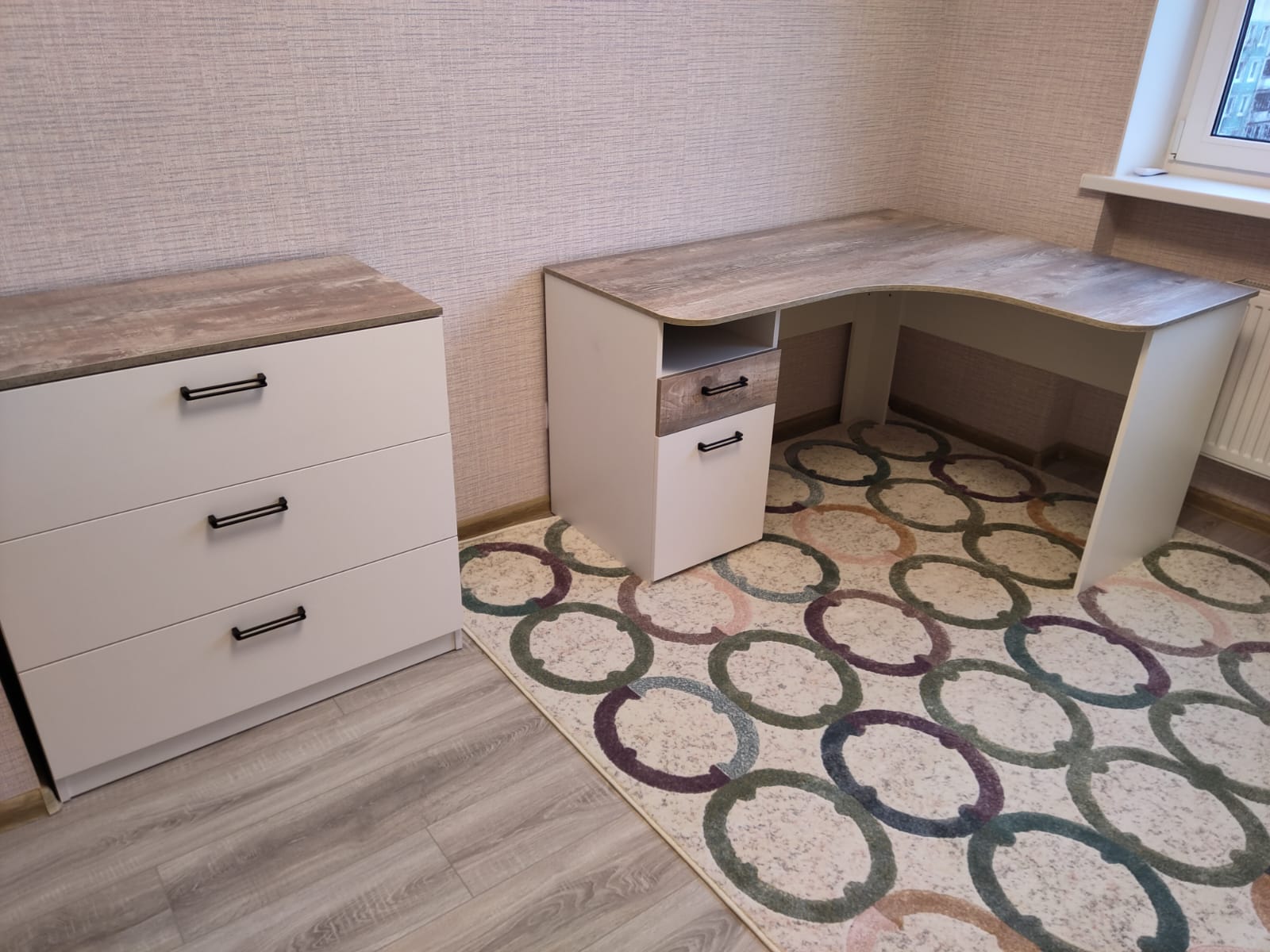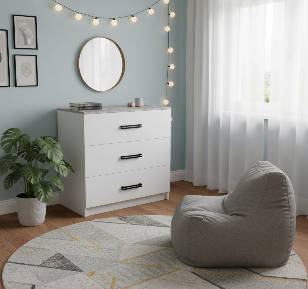 Мебель выполнена из качественного, экологически чистого ЛДСП класса Е0,5 в сочетании цветов бетон пайн + белый.