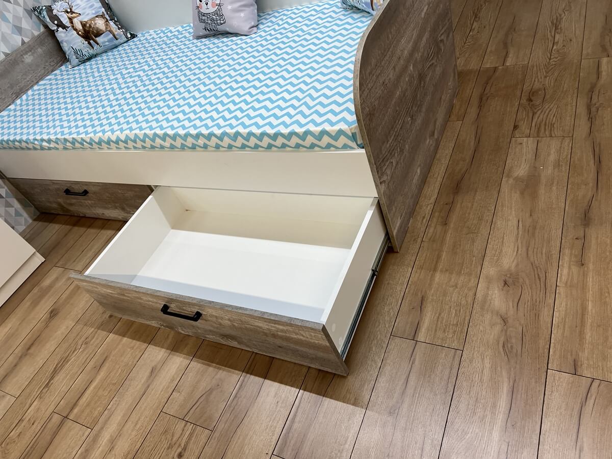 Вместо них - цельный и прочный настил из ЛДСП, который выдерживает сверхвысокую нагрузку и позволяет расположиться даже взрослому с ребенком.