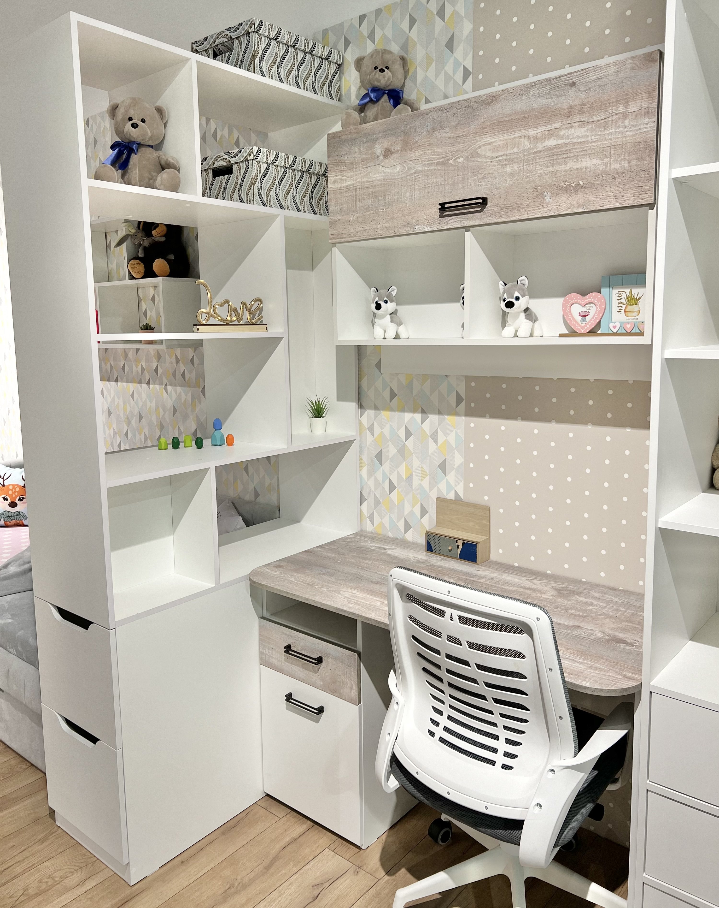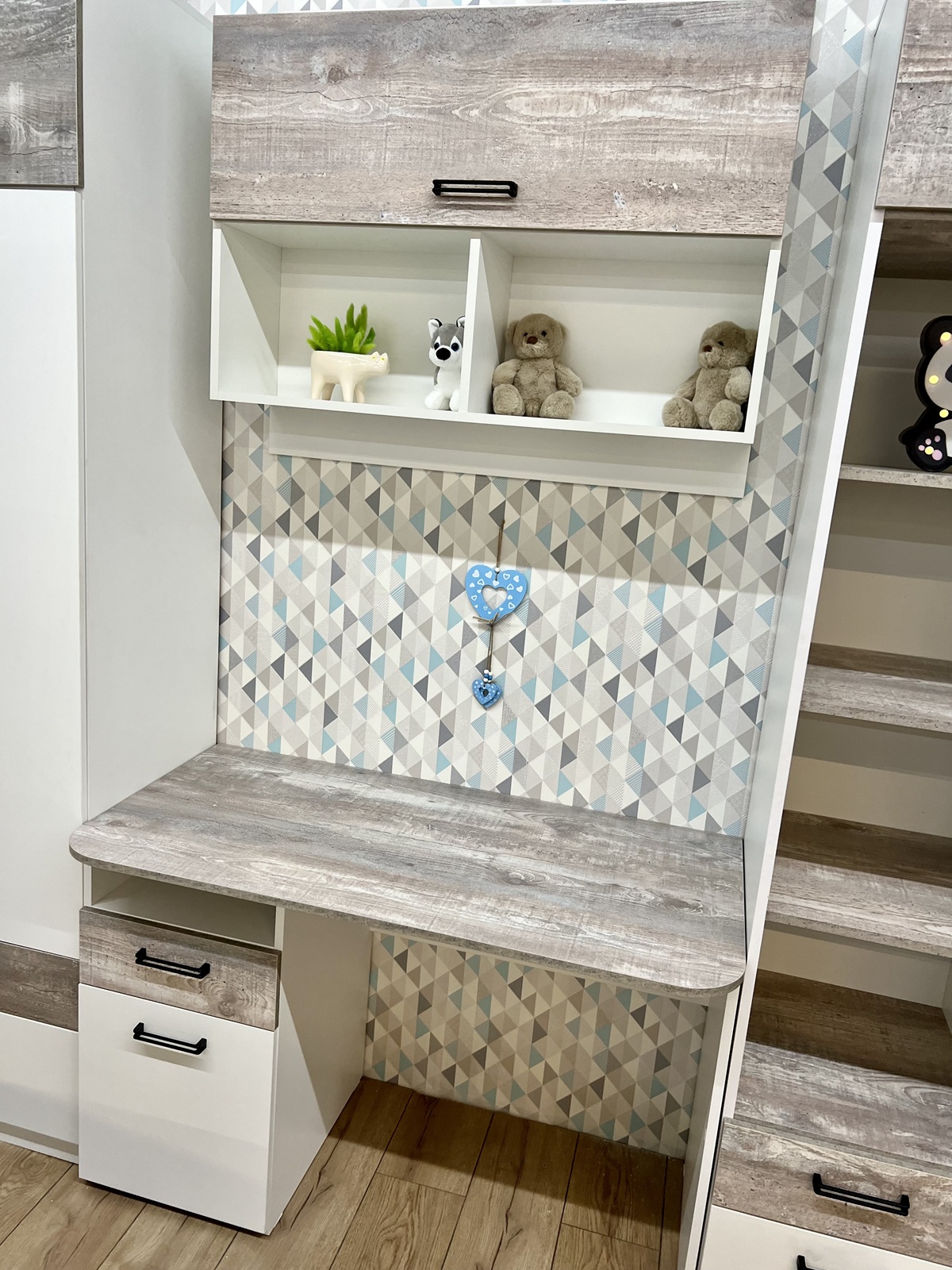 Мебель выполнена из сертифицированного, качественного, экологически чистого ЛДСП класса Е0,5 в сочетании цветов "бетон пайн" + белый.