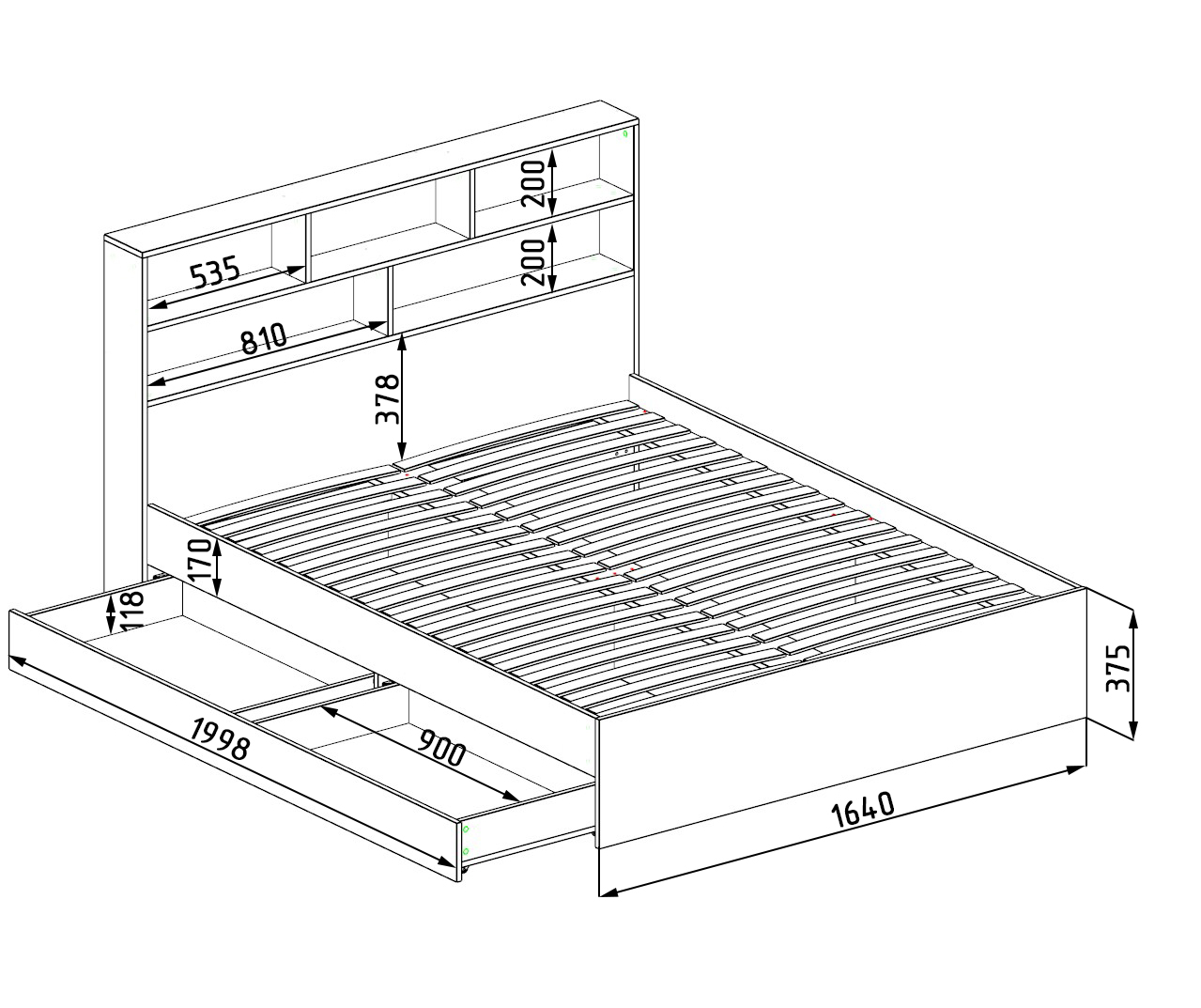 В кровать встроен выдвижной полновыкатной ящик на выкатных роликах.