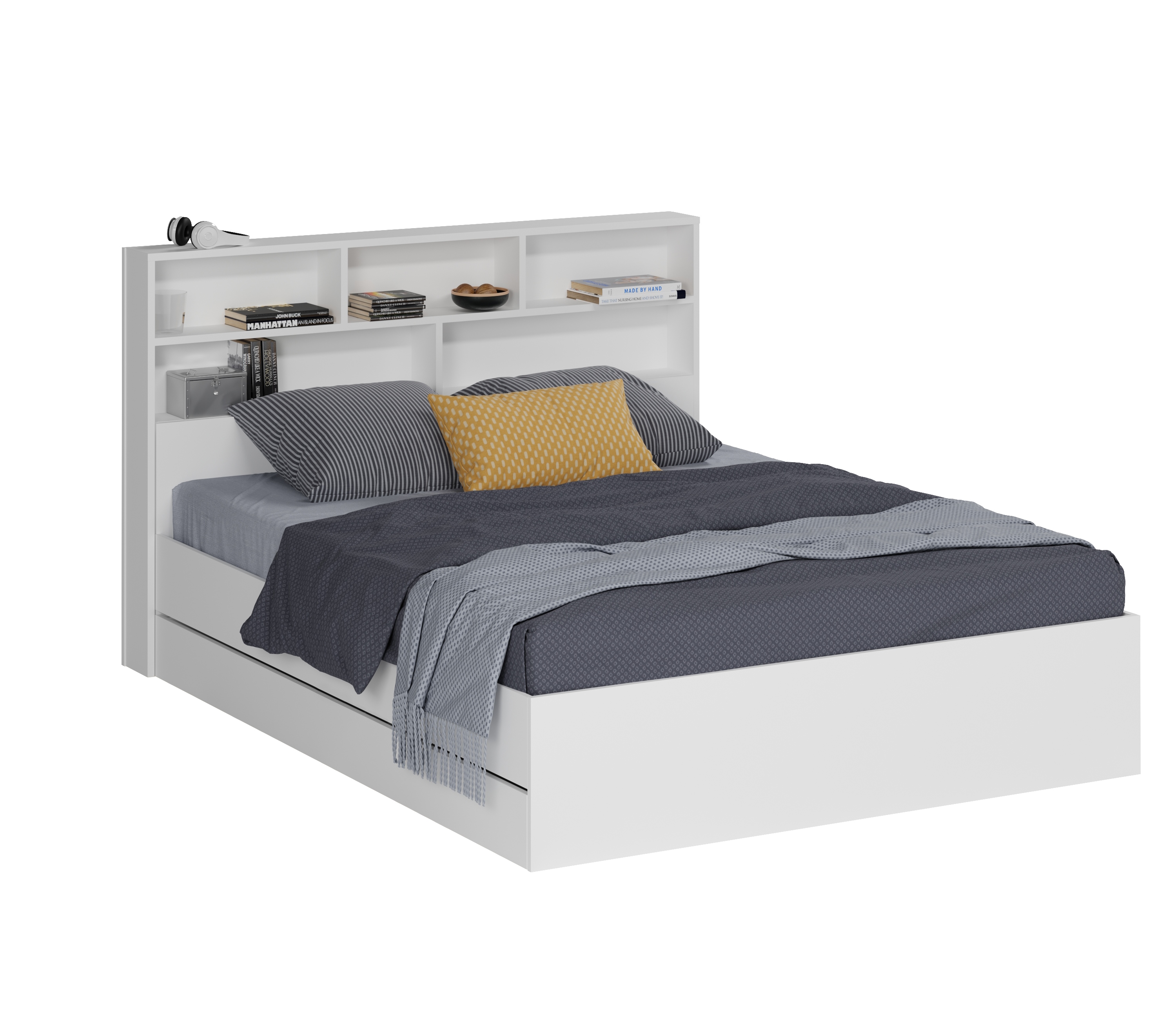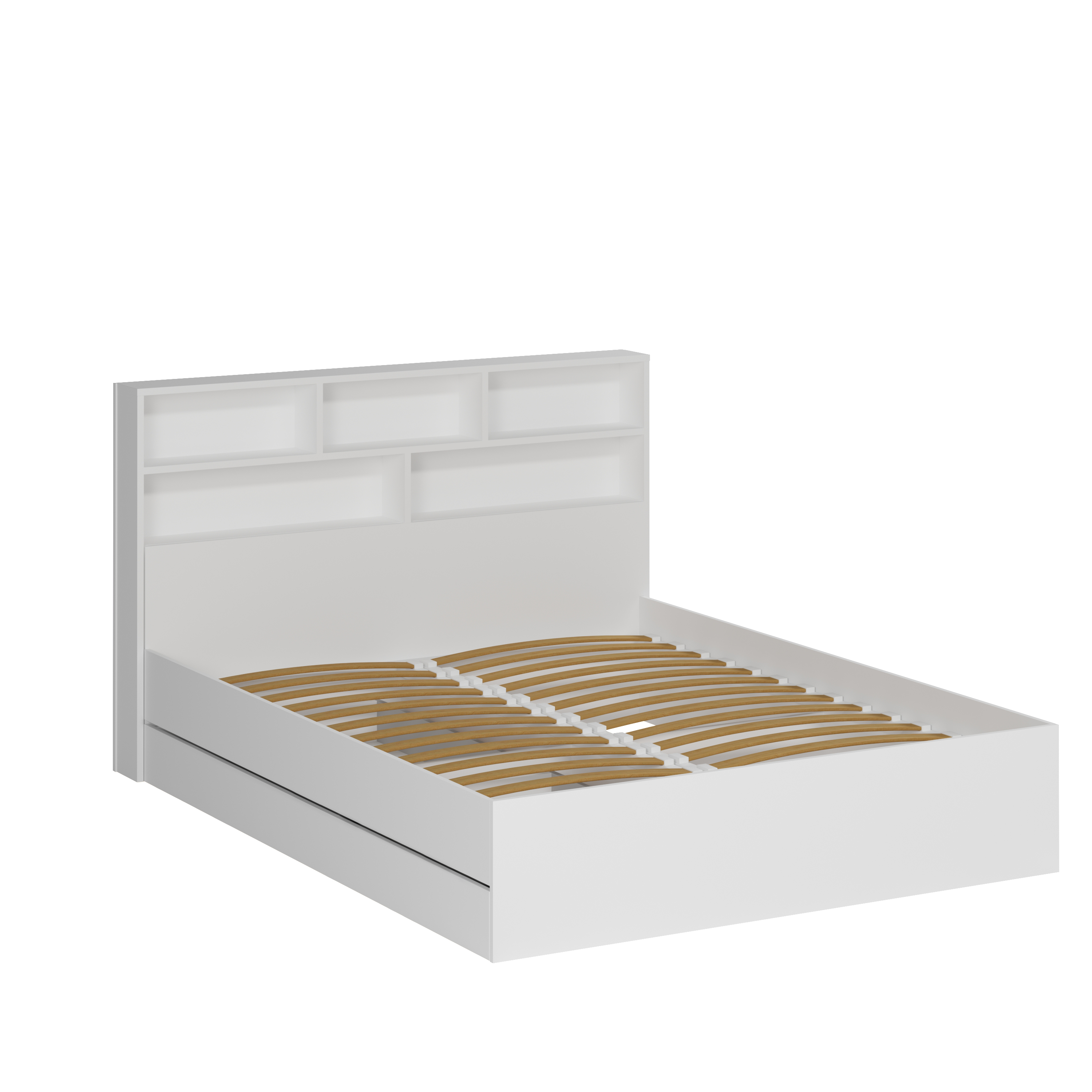 Кровать выполнена в модном белом цвете и отлично впишется в любой интерьер.
