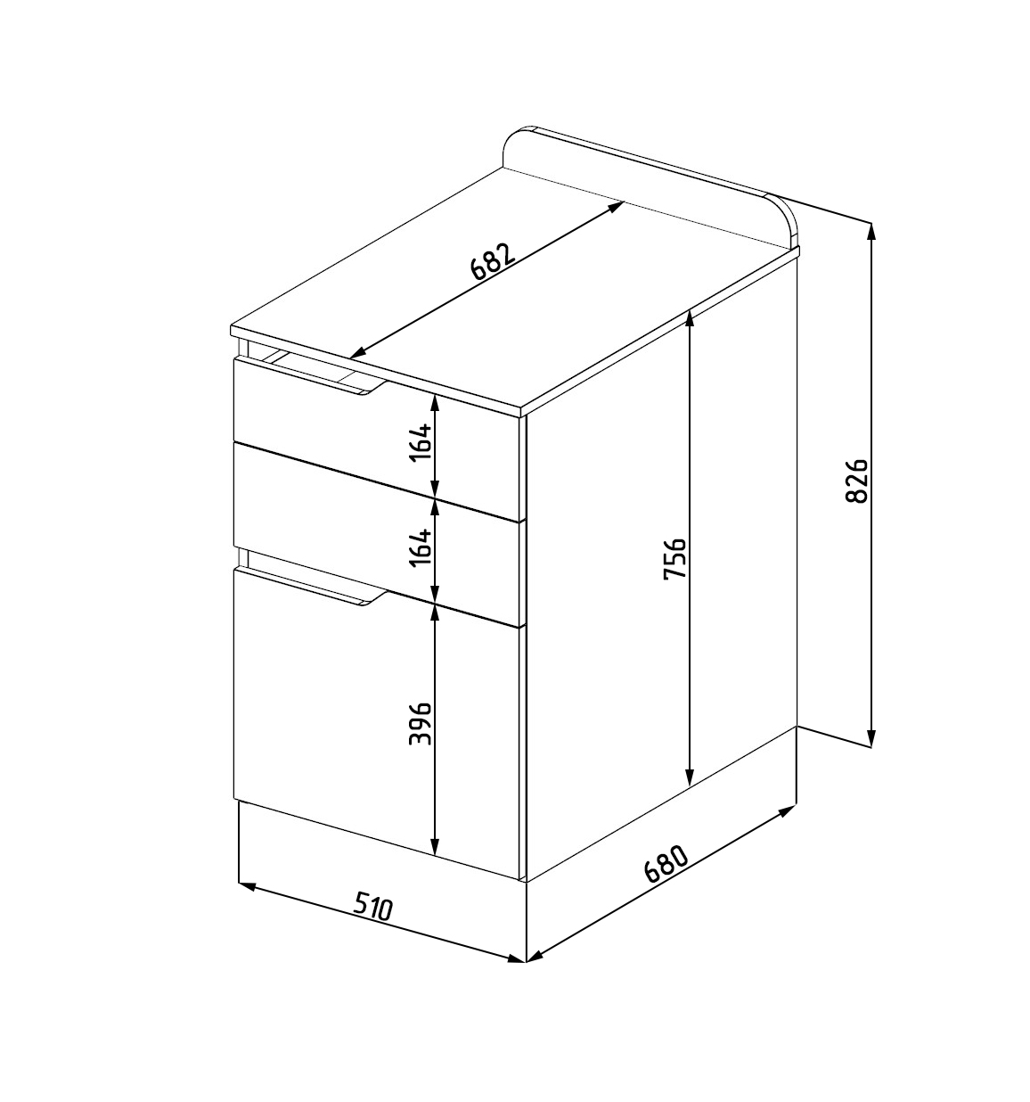 Габариты: ширина 510, общая высота 826, глубина 682 мм