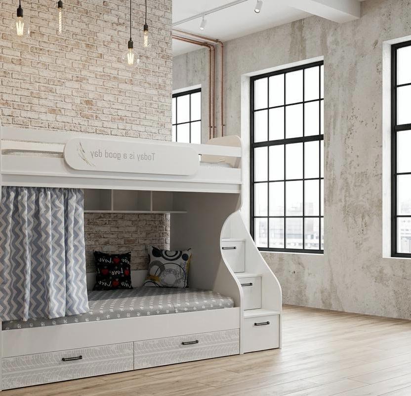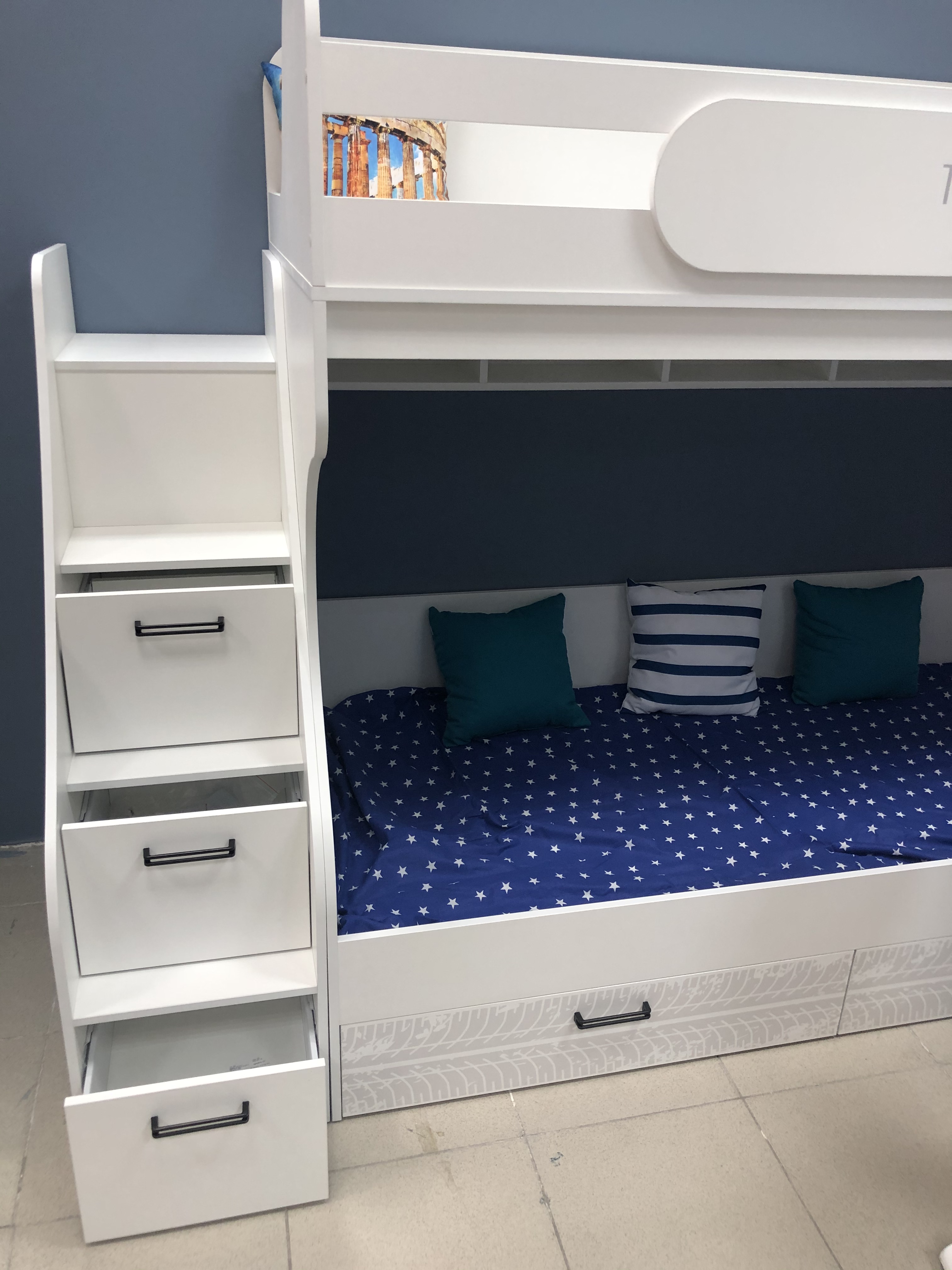 Кровать двухъярусная коллекции мебели Престиж с удобной лестницей и комфортной высотой.