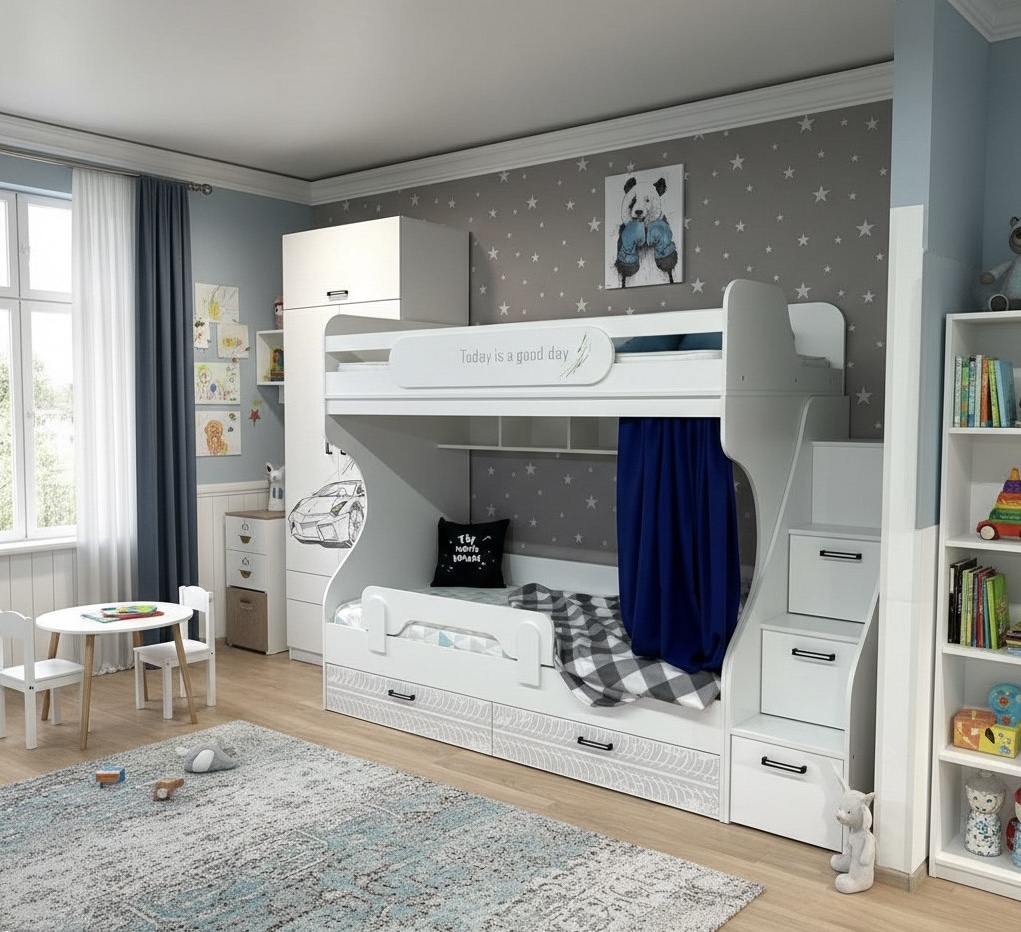 * Дополнительно к нижней кровати можно приобрести съемный бортик ограничитель.