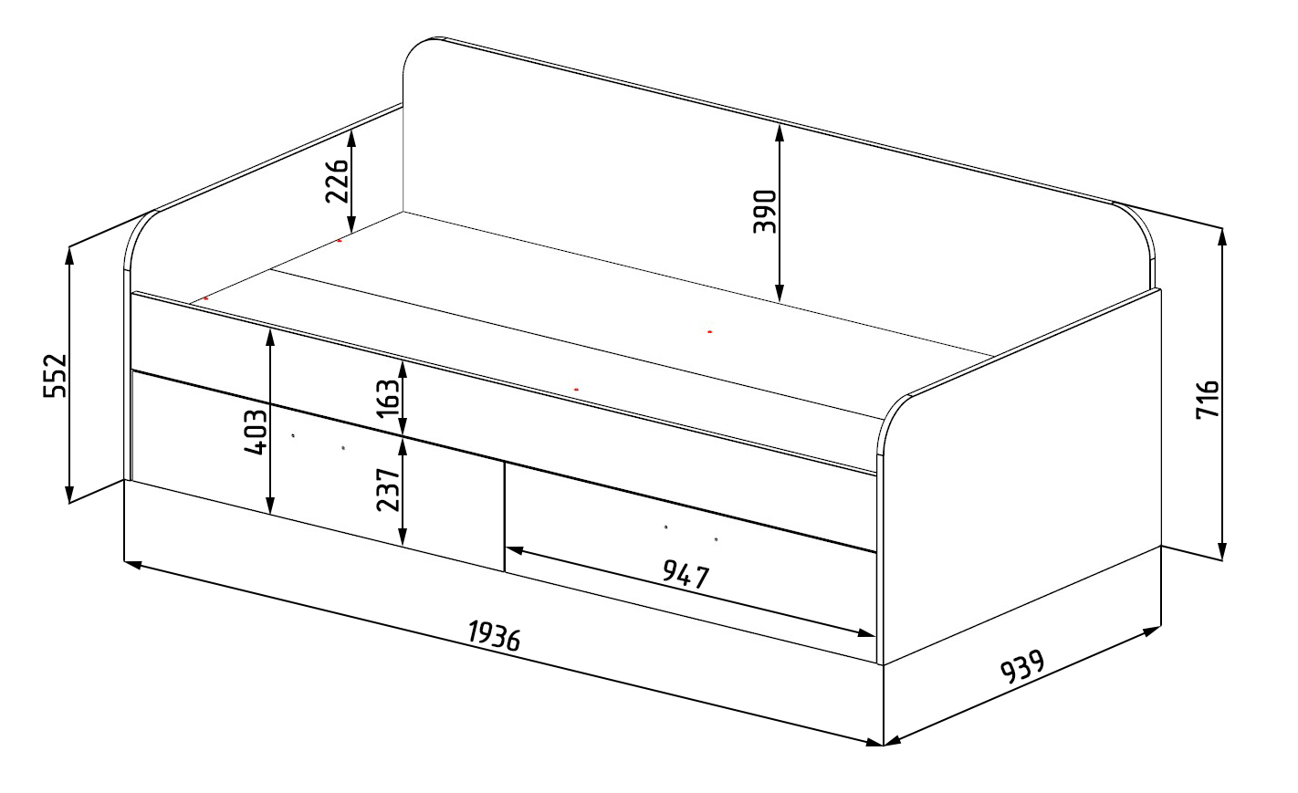 Габариты: ширина 1936, глубина 939, высота 716 мм