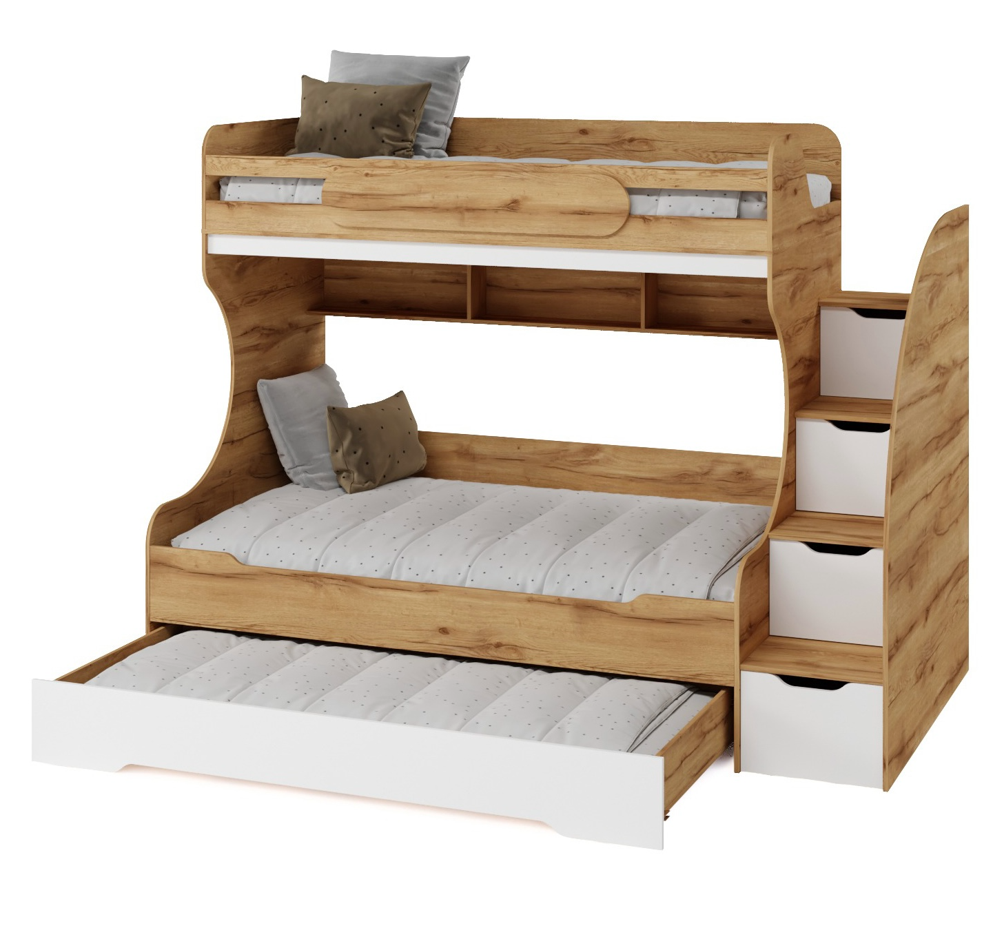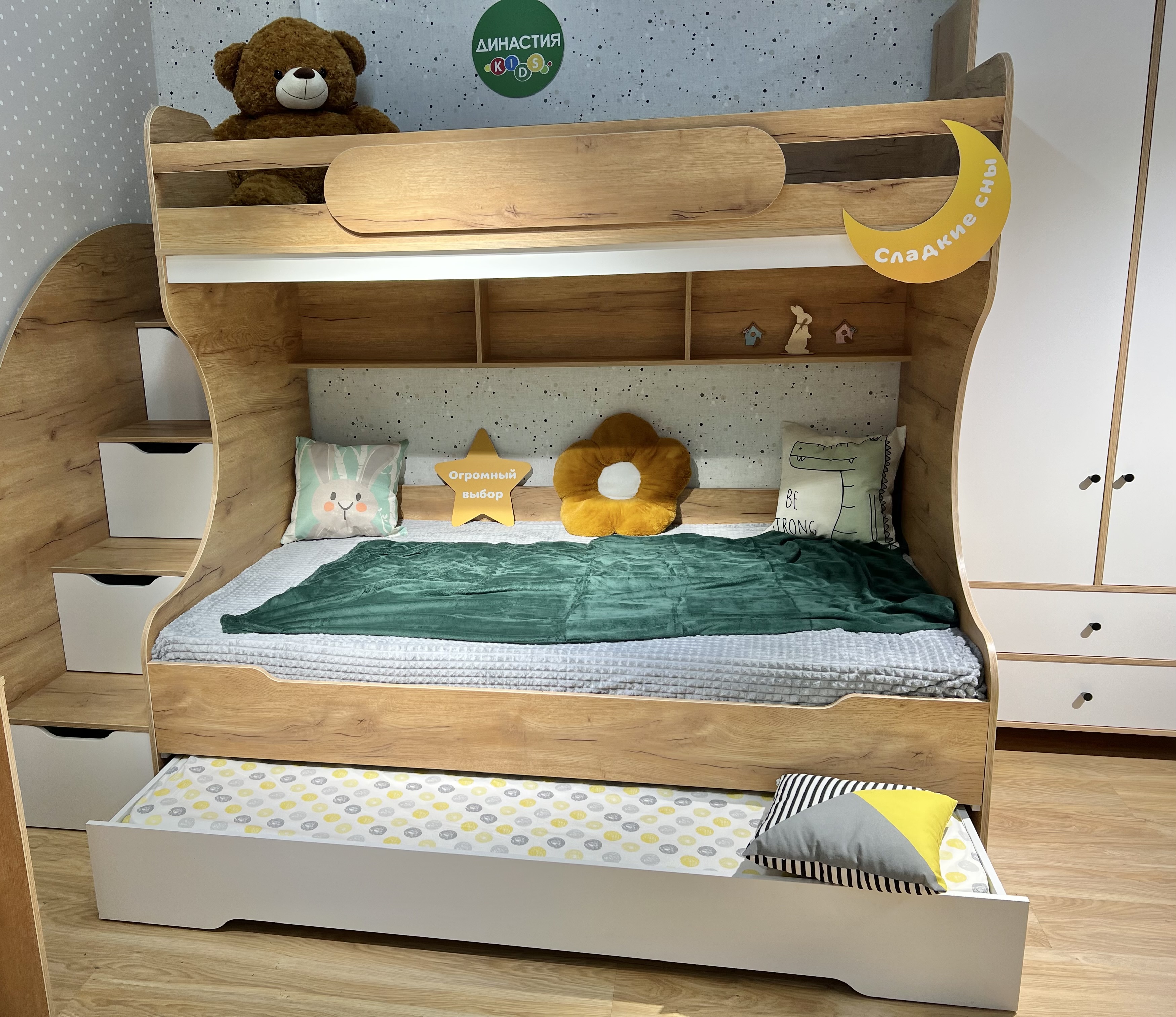 Увеличенное нижнее спальное место позволяет комфортно разместиться ребенку вместе со взрослым.