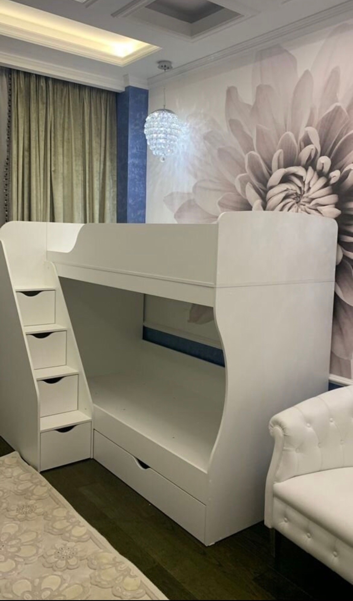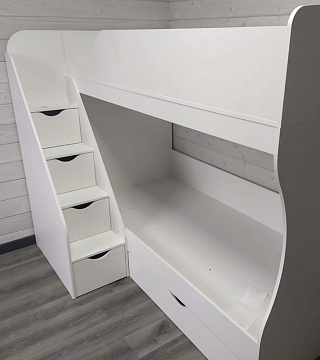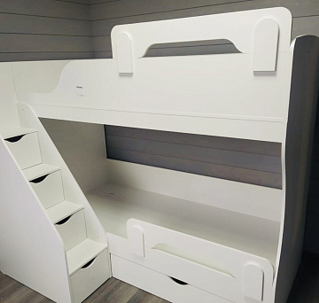 Высокая нагрузка на спальные места. Удобная лестница с ящиками. Высокий безопасный борт