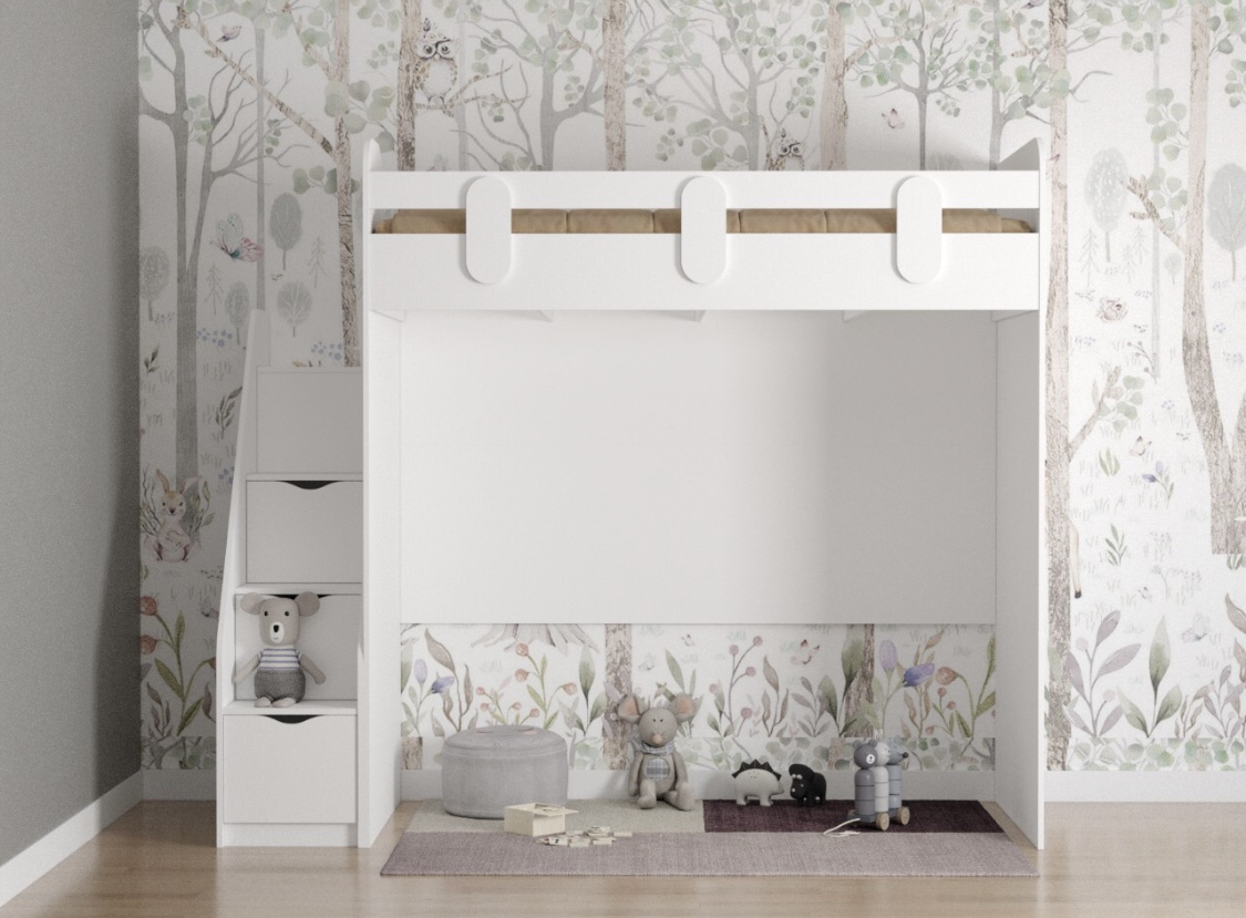 В лестницу встроены выдвижные ящики для игрушек - удобно и практично.