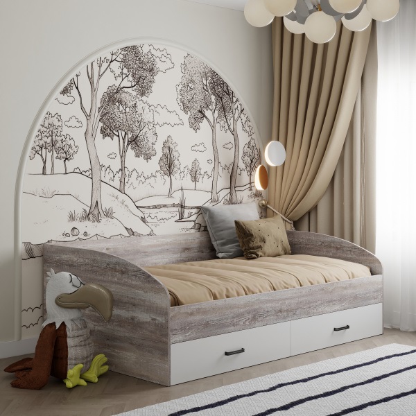 Кровать выполнена в современном дизайне, превосходно дополнит интерьер детской комнаты.