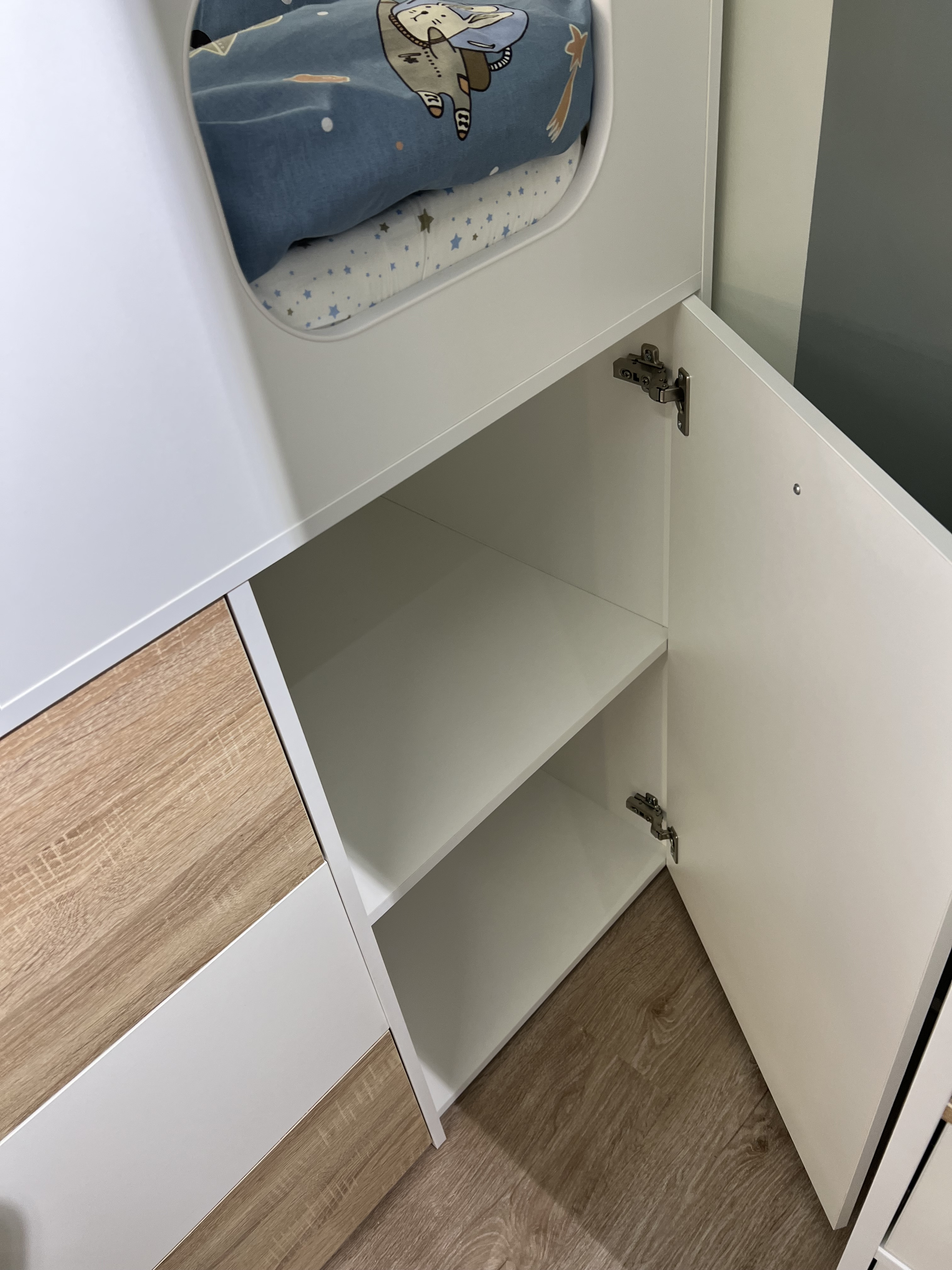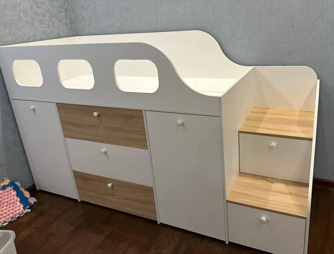 Доводчики, высокий безопасный бортик. Прочное основание из ЛДСП 16 мм. Не скрипит и не сломается при играх. Дно ящиков выполнено из ЛДСП 16 мм (не ДВП!) |