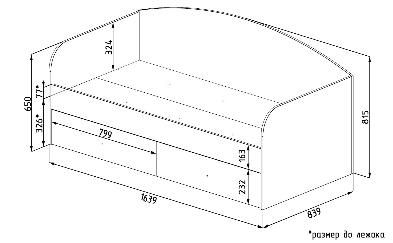 Габариты: ширина 1636, высота 815, глубина 839 мм
