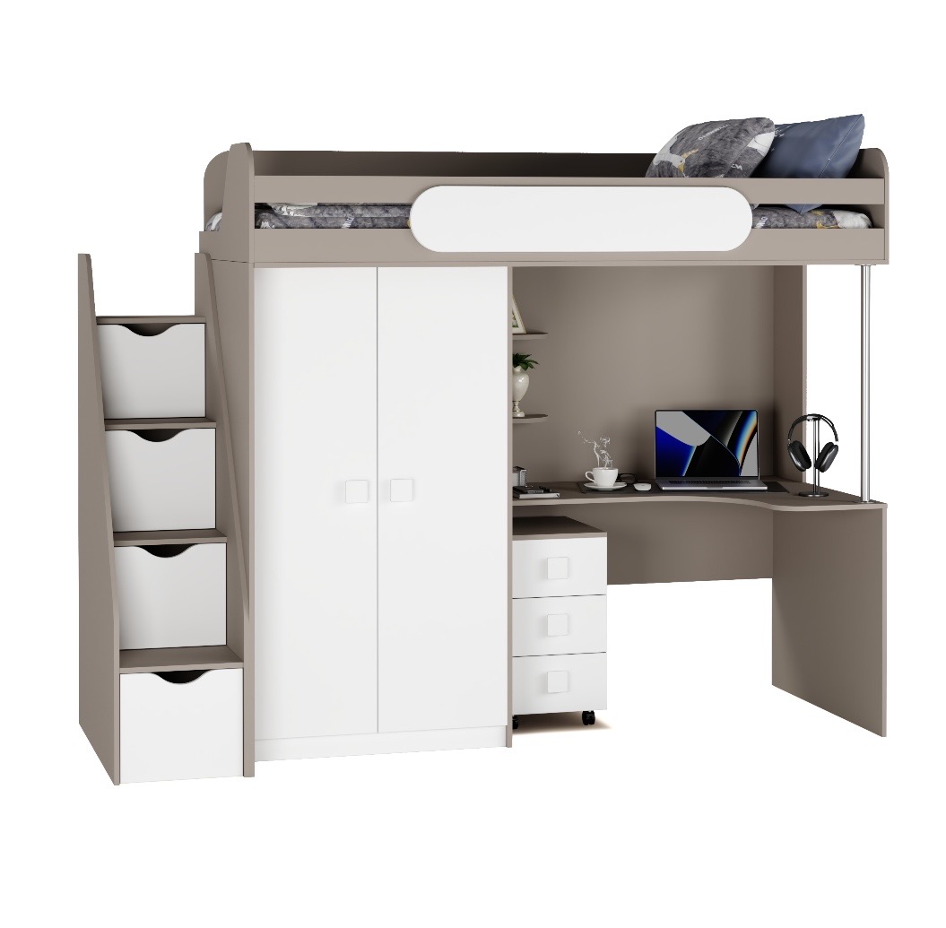 Кровать-чердак с рабочим пространством и шкафом – идеальное решение для детской комнаты.