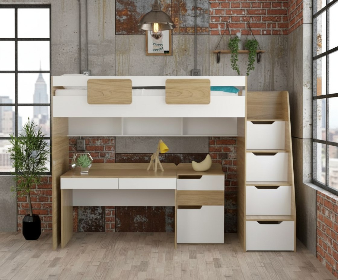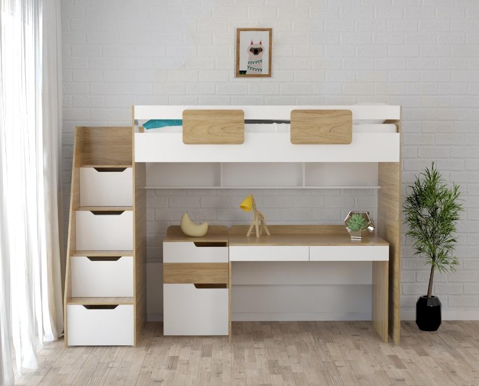 Комплект мебели: кровать-чердак Мозаика + Стол Мозаика + Тумба